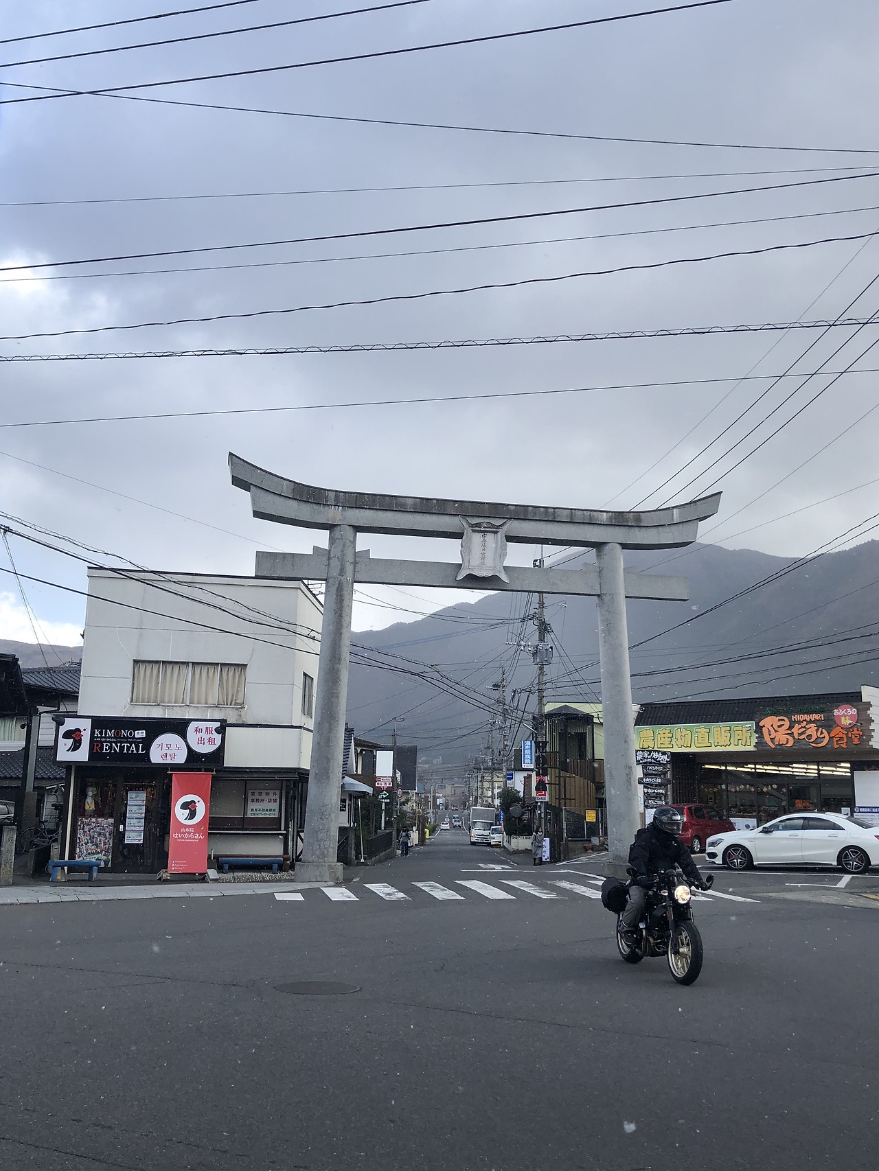 점심을 먹으며 약간 정신을 차리고, 긴린코 호수공원 가는 길을 찾아봤다. 어디 저기 산 속에 있는 줄 알았는데 그냥 마을을 가로질러 가기만 하면 됐다. 마을은 전주 한옥마을처럼 이런 저런 소품들과 간단한 먹거리를 파는 가게들로 채워져 있었다. 이렇게 추운 날에도 거리에 사람이 많은 것을 보니 날이 좋을 때는 아마도 매우 붐빌 것 같다.