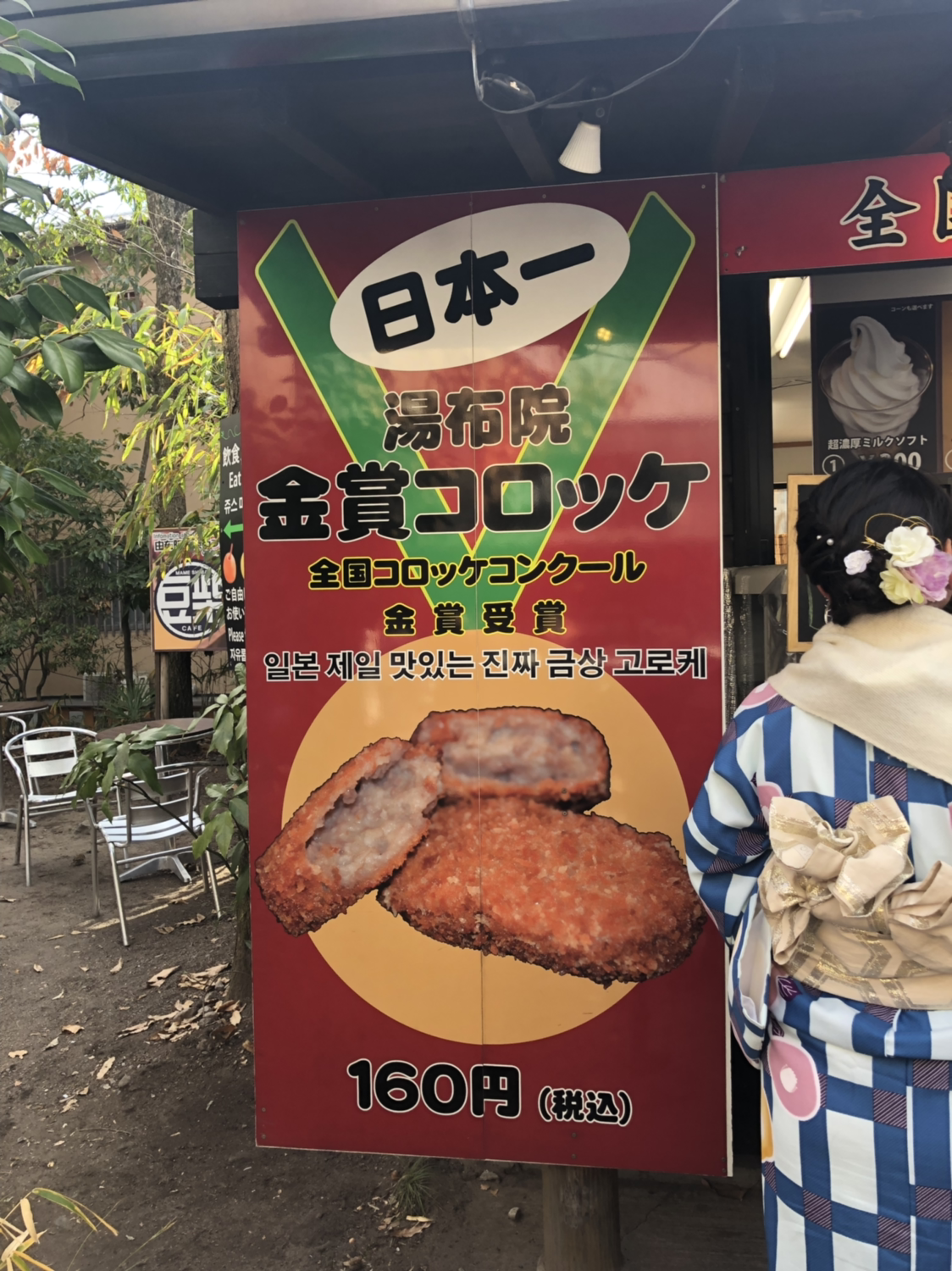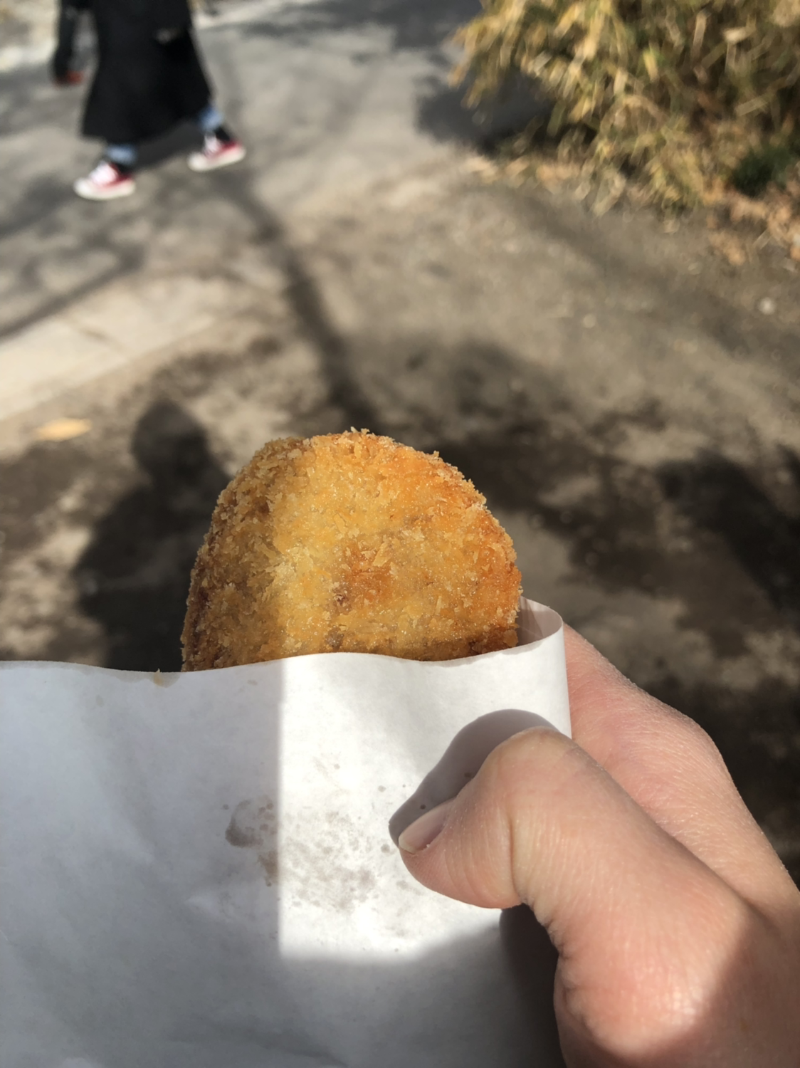중간에 전국 고로케 대회(별 대회가 다 있다 진짜)에서 금상을 받은 집이 있다고 하여 먹어봤다. 오오....겉모습은 특별할 것이 없어보이는 고로케인데 내공이 엄청나군. 간이 완벽했다. 튀김은 기름에 바싹 익혀 바삭바삭한데도 전혀 느끼하지 않었다. 안에 들어있는 소는 아주 부드러워 목넘기는 느낌도 좋았다. 금상을 받을만 하구만!