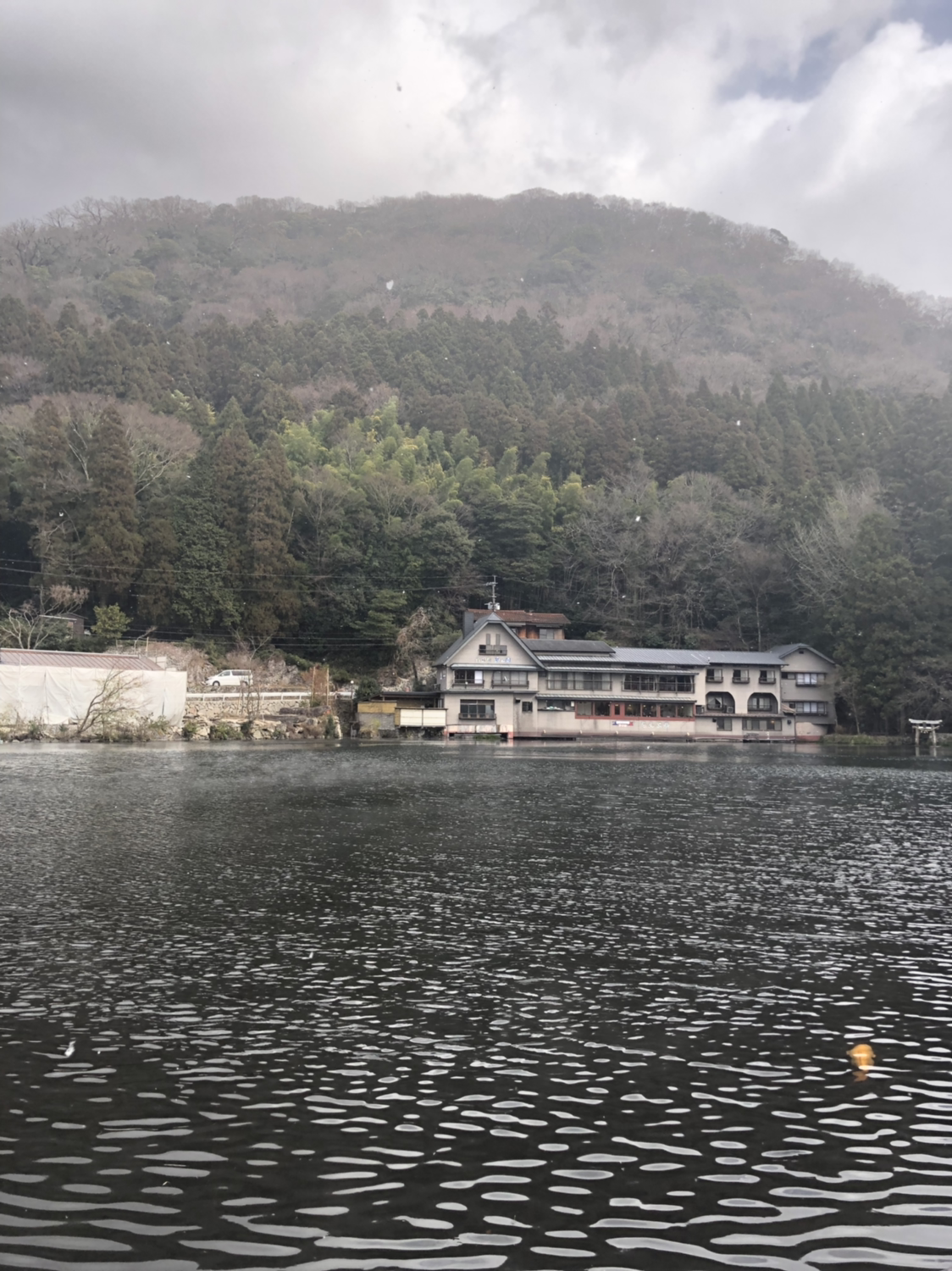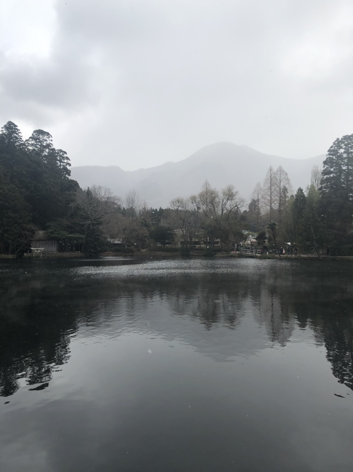 긴린코 호수는 생각보다 아주 작은 호수였다. 크기만으로 따지면 어지간한 공원에 가면 있는 큰 연못 정도의 크기였다. 다만 주변을 병풍처럼 둘러싸고 있는 산과 나무들이 호수라는 점을 알려주고 있었다. 호수에서는 은은하게 김이 올라오고 있었다. 온천수인 것일까? 추운 날에도 잉어며 오리가 유유자적하게 헤엄을 쳤다. 바람 한 점 없는데도 여러 색깔의 나뭇잎들이 아주 천천히 물결무늬로 일렁거렸다. 호수 위로는 자잘한 눈송이가 천천히 내리고 있었다. 정말 저 산 어딘가에 뭔가 신비한 것이 살고 있을 것만 같았다.