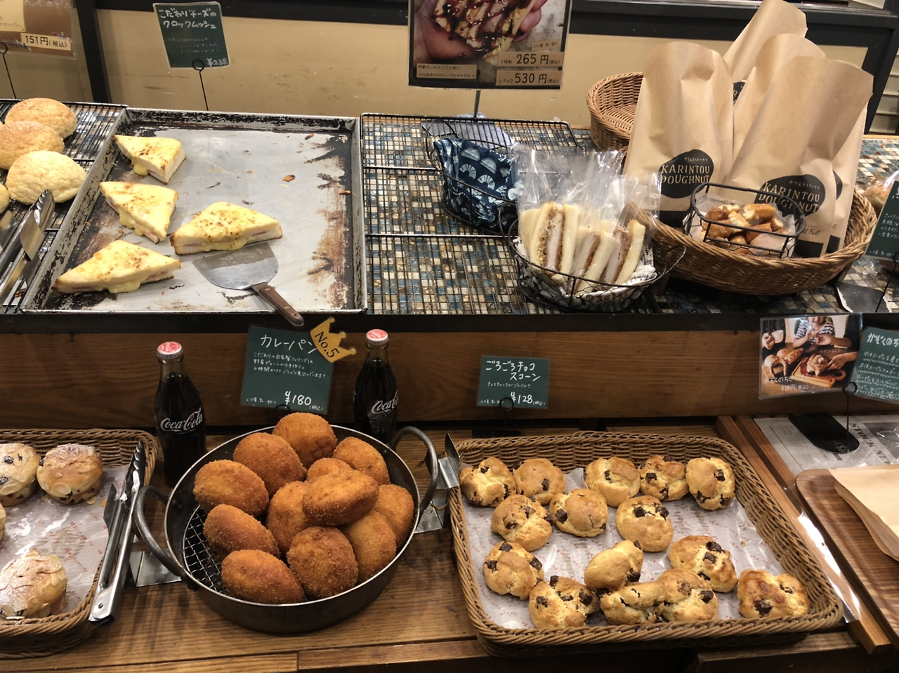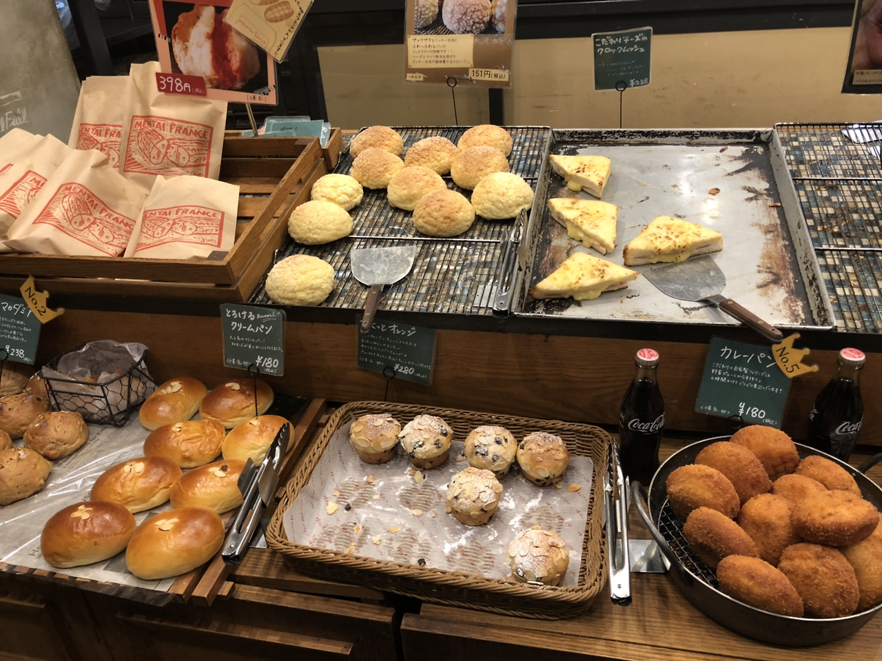 다시 먹는 이야기로 돌아가서, 식당에서는 거절 당했지만 덕분에 유명한 빵집을 들를 수 있었다. 밥을 다 먹고 나왔으면 문을 닫았을지도 모르는데 다행이었다. 후루후루 빵공장이라고 명란 바게트가 유명한 곳이다. 유명한 빵만 사려고 했지만 시식을 먹어보니 다 맛있어서 이것 저것 사고 말았다. 1000엔 넘어서 그런지, 문 닫기 전 서비스인지, 슈크림빵을 하나 덤으로 받았다.