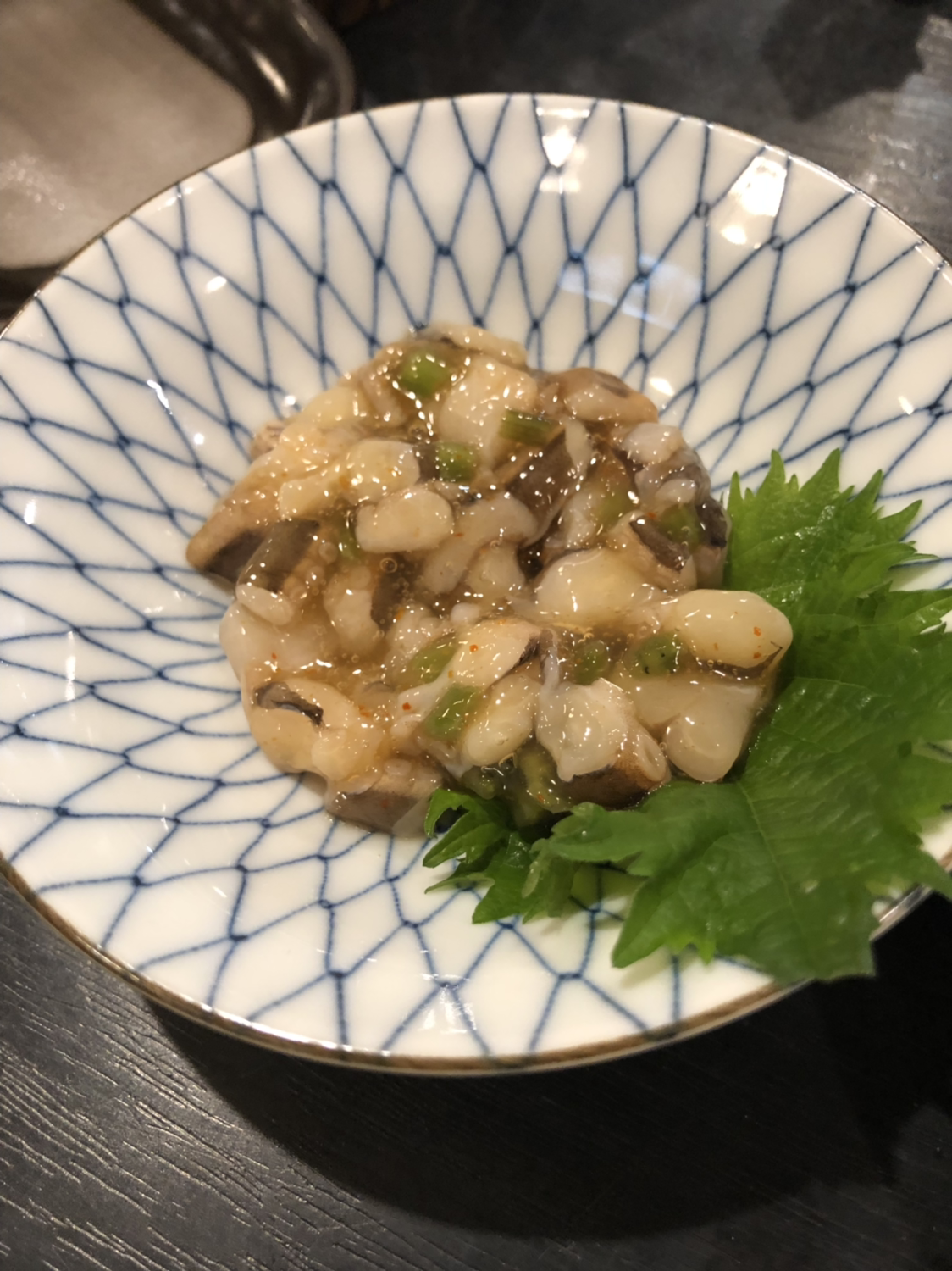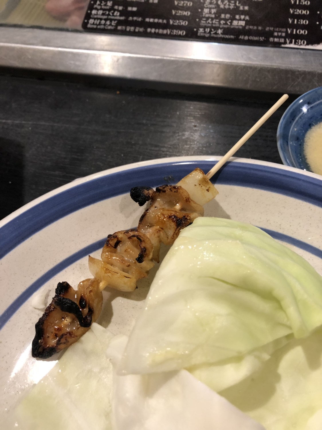 마지막으로 꼬치구이는 아니지만 타코와사비. 입안의 느끼함을 와사비의 개운함으로 씻어내보자. 오옷!! 쫄깃한 문어 위에 매콤한 와사비!! 매콤함에 코가 뚫리는 것 같군! 입안에 남아있는 기름기를 전부 씻어내는 듯 하다. 비염이 저절로 치료되는 느낌. 오늘 식사의 완벽한 마무리다.