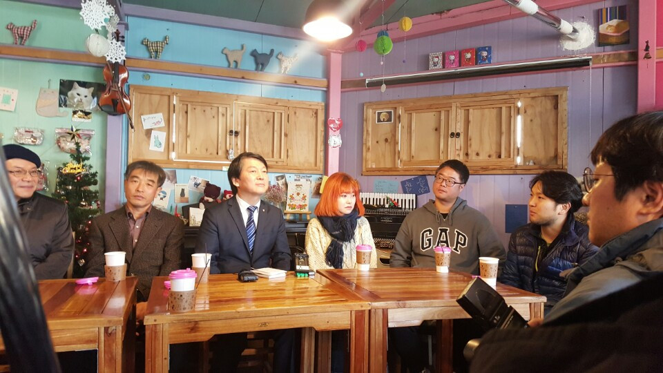 안철수 의원은 전주에서 청년 창업가들을 면담하기로 했다. 기자들은 안 의원보다 먼저 남부시장에 위치한 '청년몰'에 도착했다. 곳곳에 레이스로 치장한 디저트 가게와 노란 문이 달린 소품점 등이 있었다. 좁은 가게의 선반에는 귀여운 복주머니들이 진열돼있었다. 카페 한쪽에 놓인 석유난로 위에는 주전자가 펄펄 끓고 있었다. 마치 옷장 문을 열고 들어간 동화 속 세상 같았다.