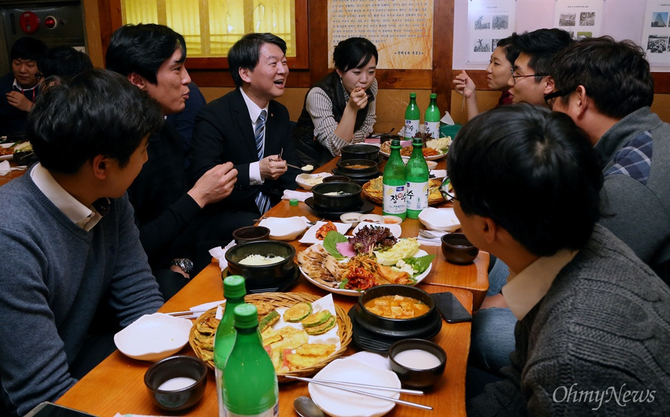 진실은 본디 불편하다. 안 의원은 "우리 원래 안 저렇잖아요"하면서도 "이 영화를 600만명이나 봤다는 건 사람들이 공감하고 공명하고 있다는 것"이라고 말했다. 그는 술자리에서 보쌈과 육전을 먹으며 영화를 통해 새정치의 필요성을 보여주고 싶었다고 했다. 그는 "영화에 나오는 미래 자동차... 조국 일보... 다 빨간색으로 된 신정당... 아슬아슬하다"며 "한국 사회의 변화를 향한 열망이 영화에 들어있다"고 평했다. 막걸리를 홀짝이며 나는 그의 말이 맞다고 생각했다. 고개를 끄덕이며 젓가락으로 홍어무침과 호박전을 집어먹었다.