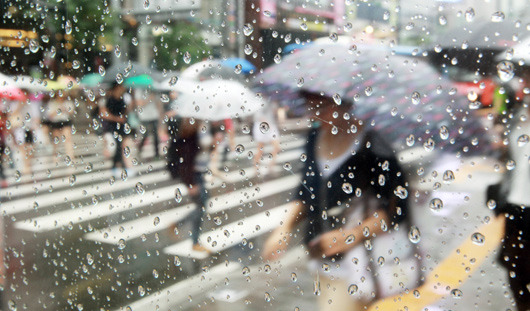 하늘에서 세숫대야로 비를 퍼부었다.