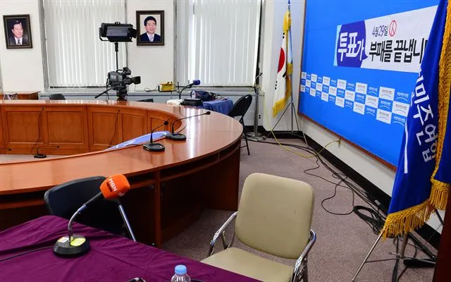 사람 어깨 높이까지 오는 새까만 삼각대가 죽 늘어선다. 지상파와 종편 그리고 보도 종합채널의 카메라 기자들이 육중한 방송용 카메라를 삼각대 위에 얹는다. 이들이 화이트 밸런스를 맞추는 사이 신문사와 통신사 카메라 기자는 회의석 맞은편에 진을 친다. 취재기자는 재빠르게 간이의자를 차지하고서 노트북을 켠다. 인터넷을 연결한다. 이제 막이 오른다. 당대표회의실 천장에 설치되어있는 방송용 LED조명이 새하얗게 빛난다. 방송사의 와이어리스 마이크 체크와 신문·통신사의 녹음 준비까지 끝나면 시작이다.