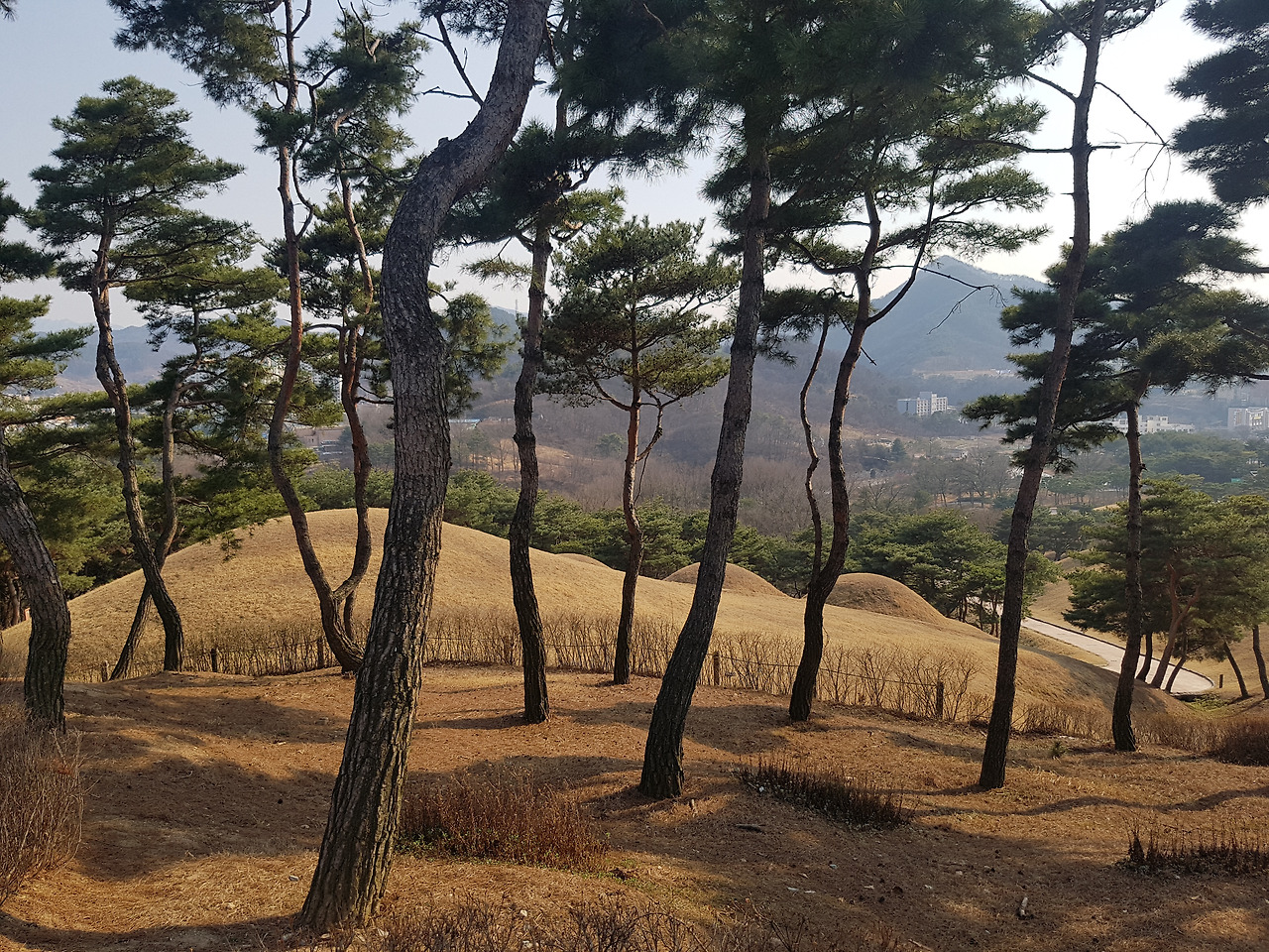 이 무령왕의 왕릉은 공산성과 가까운 왕실 묘역인 송산리 고분군에서 우연한 계기로 발견되었는데, 그 무덤양식에서 백제의 국가비전과 국난을 극복한 원동력의 실마리를 엿볼 수 있었다. 하나는 무덤양식인데 중국 양나라의 벽돌무덤양식을 취하고 있다. 바다 건너 선진국들과 교류를 하며 줄 것은 주고 받아들일 것은 받아들이는 실리외교를 펼친 증거이다. 또 동남아시아산 유리구슬과 같은 수입 유물들도 다수 발견되었는데, 항해술이 발달하지 않았던 당시에 동남아의 나라들과 교역했다는 것은 백제가 글로벌 외교를 지향했고 이를 바탕으로 국력을 키웠다는 것을 알 수 있다. 다른 하나는 매지권이다. 땅의 신에게 무령왕의 묘지를 산다는 일종의 계약서인데, 돈다발과 함께 발견된 매지권은 자연을 정복 대상이 아닌 공존의 대상으로 인식했던, 백제인들이 지닌 문명 가치관의 상징으로 평가된다. 21세기를 사는 현대 문명인들 중에 이렇게 순수한 도덕성을 겸비한 사람이 몇이나 있을까? 소나무가 울창한 송산리 고분군을 한 바퀴 돌며 생각에 잠겼다. 고분군 입구 앞 전시실에 상세 모형을 꾸며 무령왕릉에 대해 자세한 해설을 하고 있으니 참고하길 바란다.