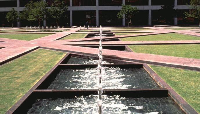 피터워커는 얇은 2차원의 면이지만 두껍게 쓰면 된다...고 하여 Thick surface라는 이야기를 이따금 한다. 대표적 작품인 bernet park. 녹색의 녹지공간과 하늘색의 수공간이 길들과 함께 겹쳐있다.