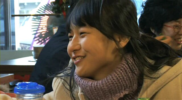 식당으로 들어오는 행복한 그녀의 표정. 인사하고 말은 하는데 여전히 주위 손님들 소음으로 덮인다.