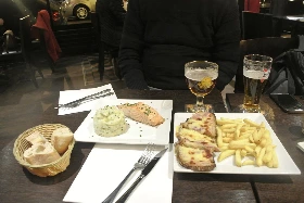 길을 잘못 들었다. 파리에는 개선문을 중심으로 방사형으로 13개 도로가 나 있는데 그 중 하나가 샹젤리제이다. 그런데 샹젤리제 정 반대에 위치한 도로로 걸어가버렸고, 추위와 지랄 맞은 날씨에 지쳐버려서 우리는 더 이상 걸을 수가 없을 정도가 되었다. 그래서 그냥 근처 아무 카페에나 들어가서 파리에서 첫 식사를 하였다.