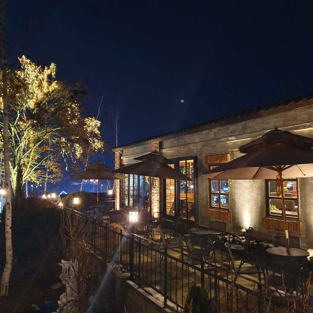 구경을 마치고 다시 주차장 쪽으로 올라왔다. 미리 봐 둔 카페에 가기 위해서였다. 언덕 위에 넓은 창을 가진 카페가 괜찮다고 생각하고 있었기에, 구경을 마치자마자 서둘러 자리를 옮겼다. 계단을 따라 올라가니 밖에서 본 것보다 규모가 훨씬 컸다. 비슷한 규모의 건물이 몇 채가 더 있었고, 카페 한쪽에는 작은 연못이, 한쪽에는 한껏 조명을 올려놓은 나무가 있었다. 카페에 들어가는 것도 잊은 채 카메라 셔터를 눌러댔다. 한참을 구경하다 주문을 하기 위해 카페로 들어갔다.