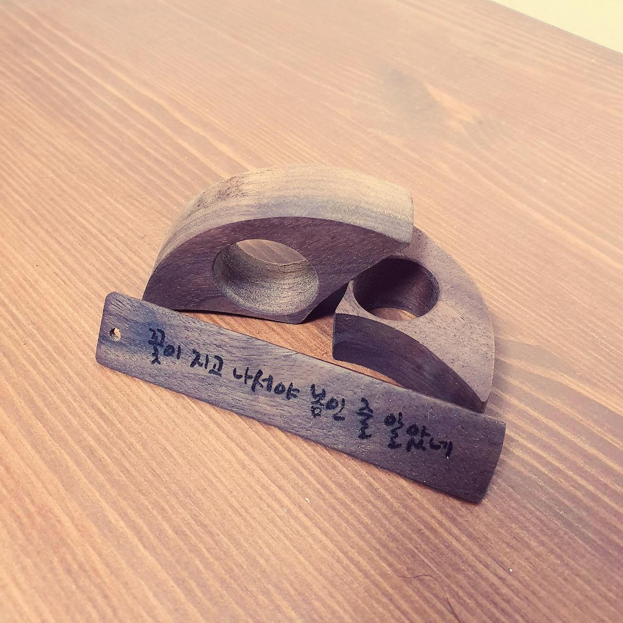 나 또한 그랬으니까. 한 가지 정도는 감이 온다. 하나는 분명 책갈피일 것이다. 자그마한 구멍에 가죽끈을 넣는다면 더할 나위 없이 완벽해질 책갈피. 그렇다면 저건 도대체 무엇인가. 요상한 모양의 나무에 요상한 구멍.