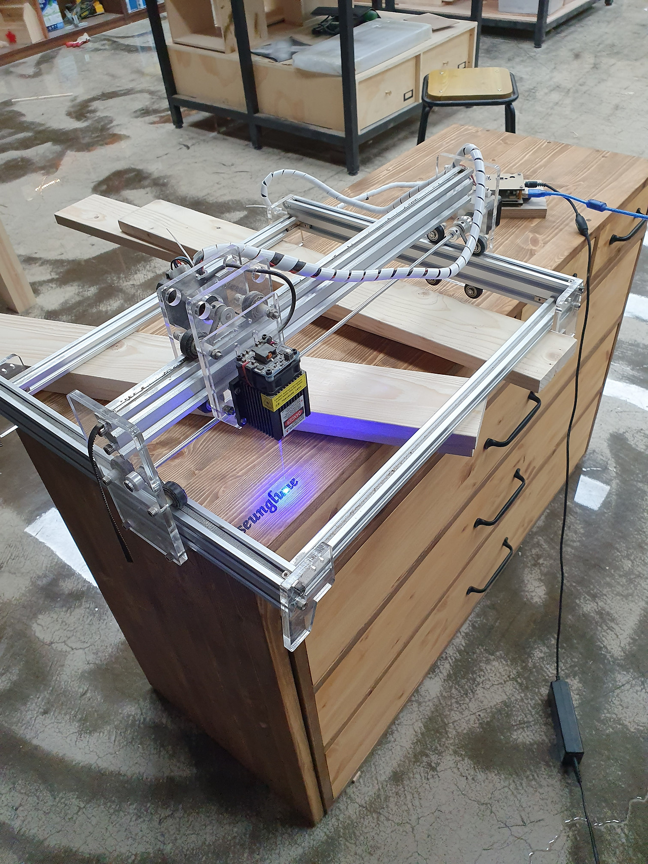 완성되고 각인 작업을 하며, 잠시 가구를 바라보며 휴식을 취했다. 볼 수록 기분이 좋아지는 화장대였다. 설계에서부터 마음에 들지 않는 가구였지만, 막상 만들고 보니 여간 예쁜 것이 아니었다. 그렇게 잠깐의 휴식을 뒤로하고 이내 마지막 제작과정에 들어간다. 거울이 들어갈 틀을 제작해야 했다.