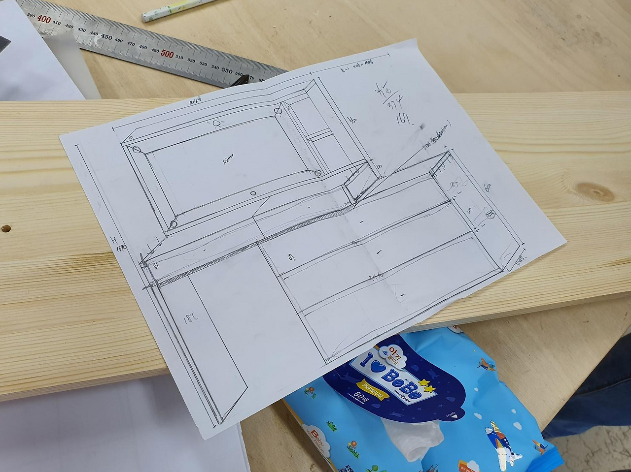 그리고 그 길로 서랍장을 뒤로한 채 얄팍한 화장대 설계도를 그려 엄마에게 보여줬다. 마음에 들지만 어딘가 마음에 들어하지 않는 표정이었다. 이유를 듣자니, 화장대는 이쁘나, 이렇게 큰 화장대를 넣어두면 서랍장을 넣을 곳이 없다는 것이었다. 문득 뇌리를 스쳐가는 간단하고도 명료한 생각. 좋은 가구란, 내가 보기에 예쁜 것이 아닌 주문자가 보기에 예쁜 가구가 아닐까.