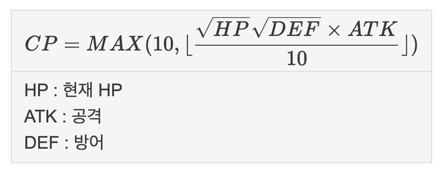 CP라고 Combat Point의 약자인데 이 숫자가 높을수록 힘이 강한 것이라고 한다.