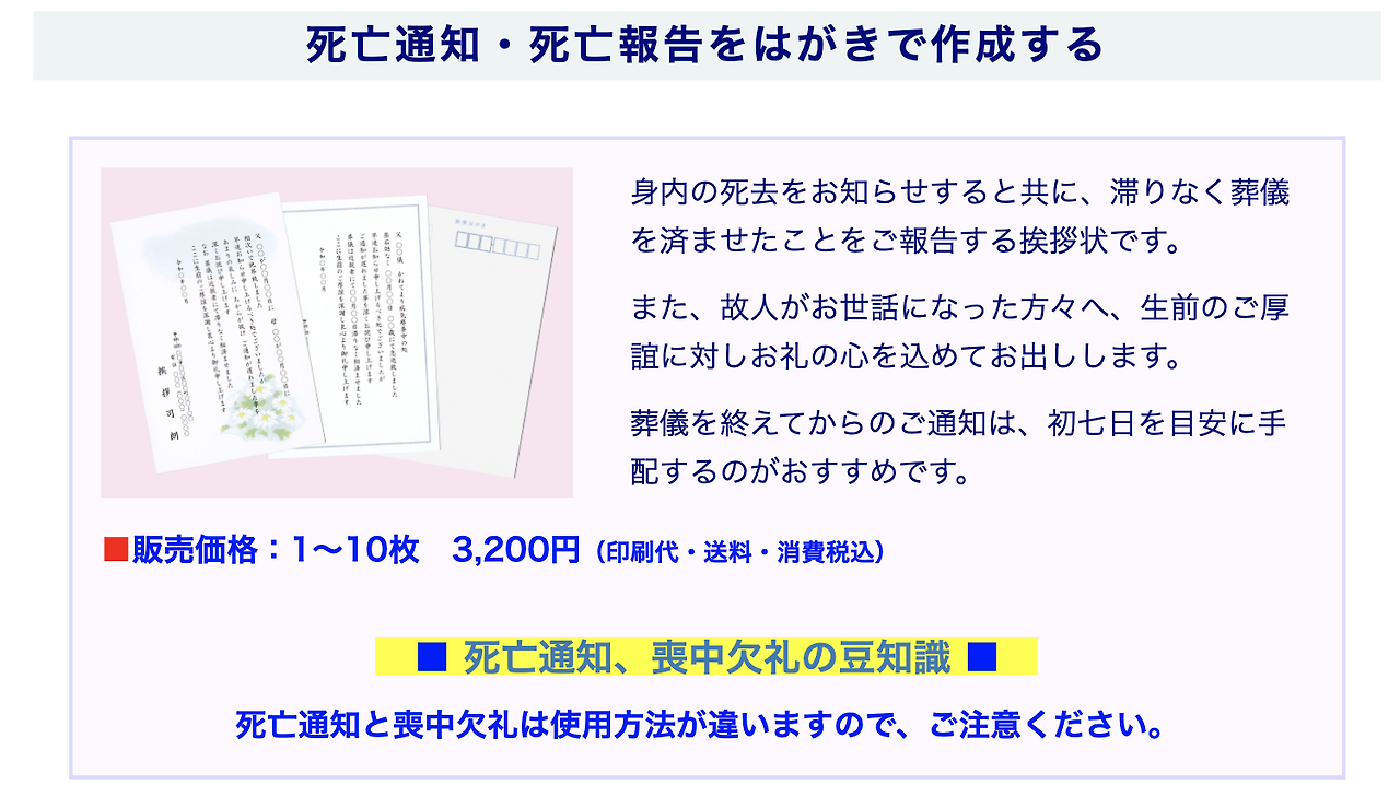 미리 사망 통지를 알리는 엽서가 있는데 이것도 까다로운 형식이 있어