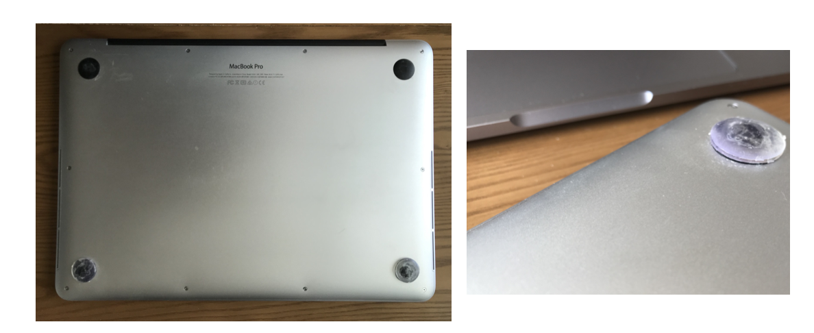 노트북 뒷면 커버에 붙어 있는 4개의 발받침 중에 2개가 없어서 그럴 거라고 생각하고