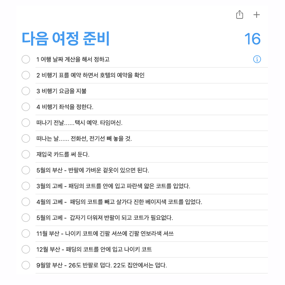 이제부터는 뭘 준비해 두고 뭘 준비해서 떠나야 하는지