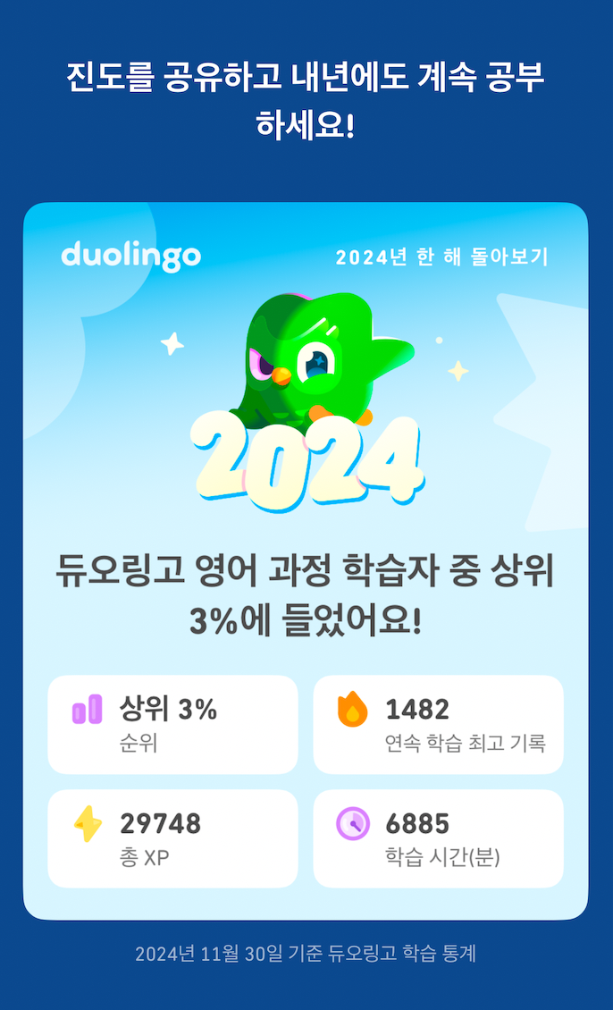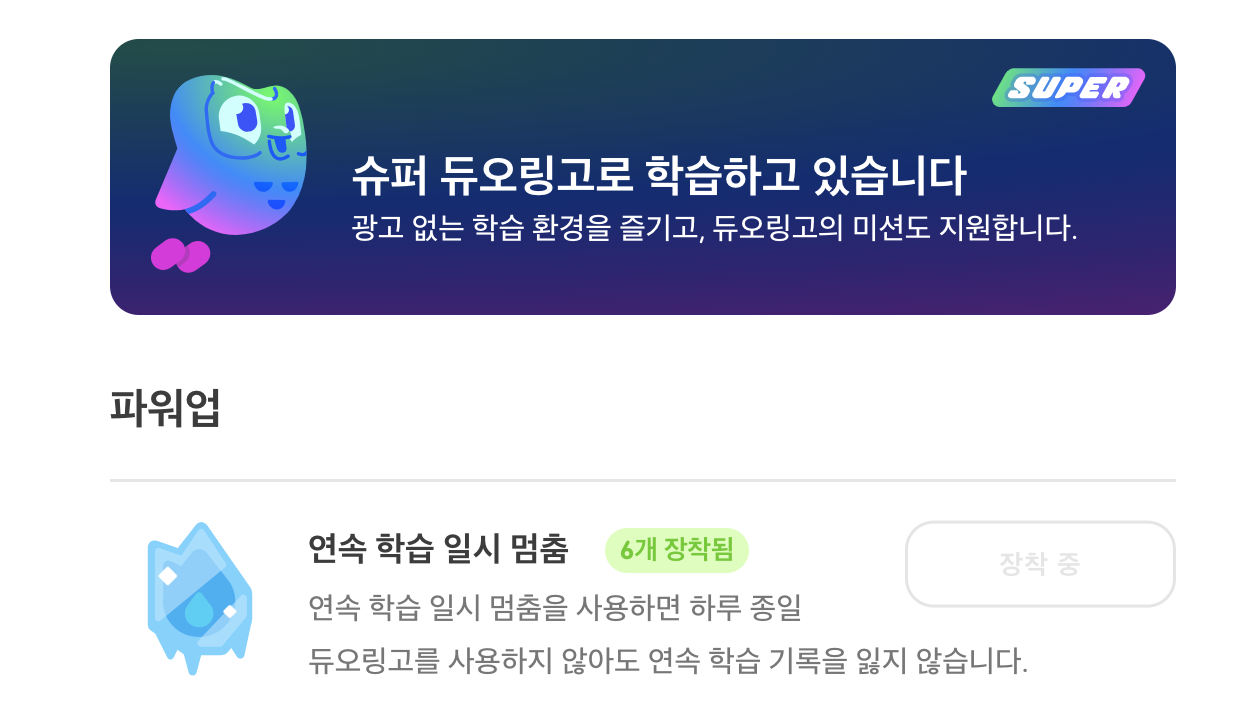 이 듀오링고는 열심히 하면 깜빡 하루를 넘겨도 메꿔주는