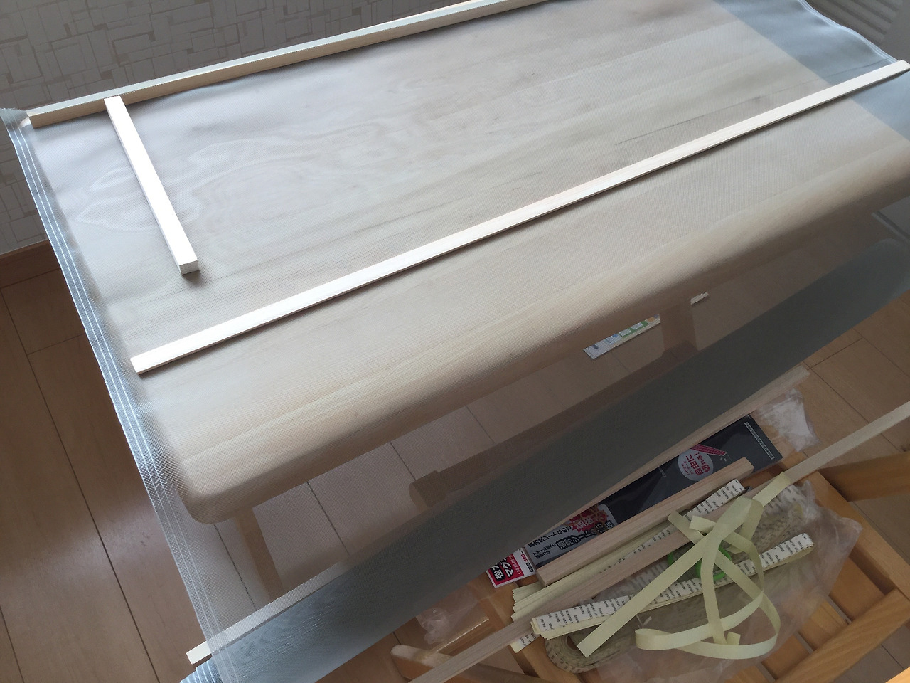 망을 나무틀에 고정시키는 것이 엄청 힘들어 포기할까 하는 생각까지 했었다.