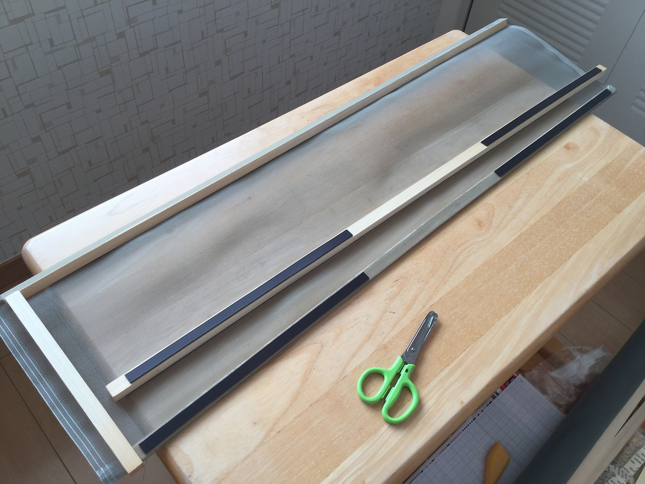 창의 안쪽으로 나무틀을 만들어 고정을 시키고 그 틀에 방충망을 붙이려고