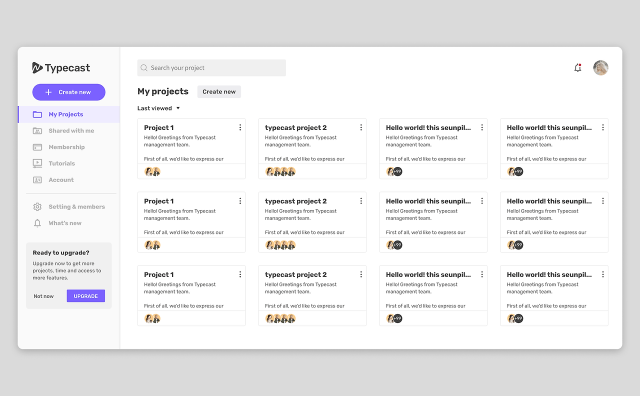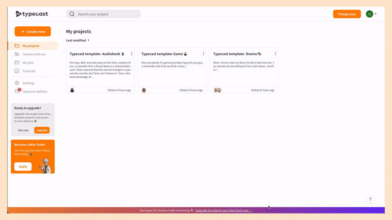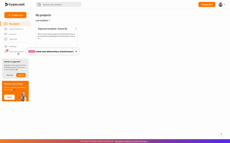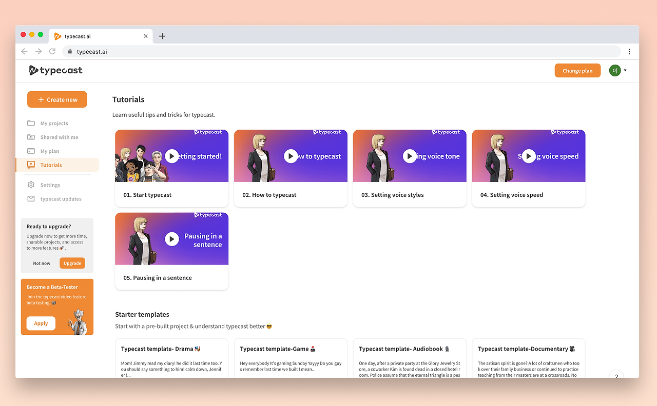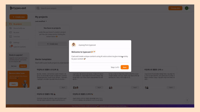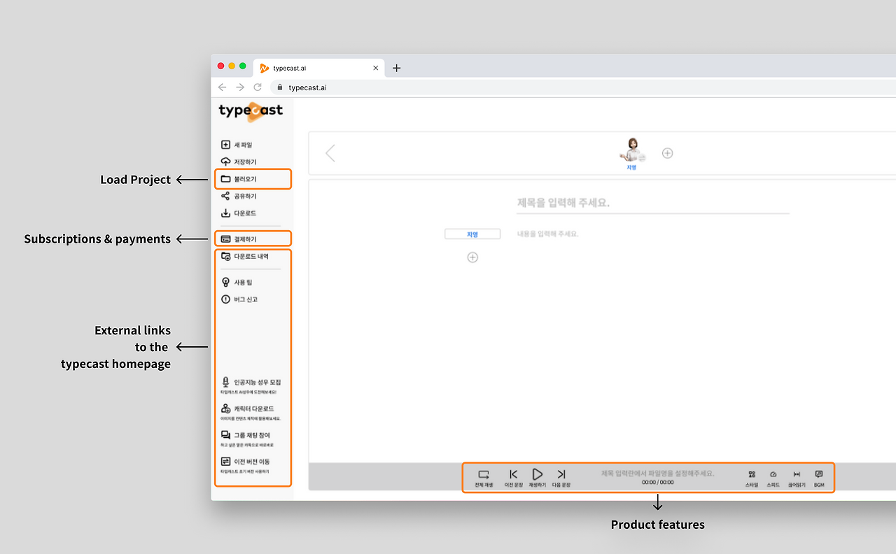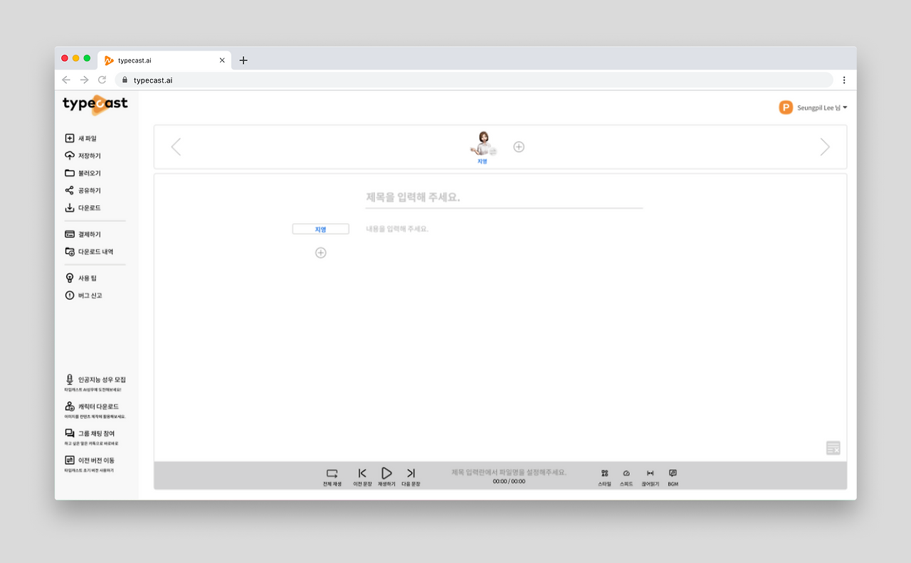 타입캐스트라는 제품은 특정 목소리의 고유한 특징을 학습하여 그 목소리로 자연스러운 음성을 합성해주는 인공지능 성우 서비스 이다.