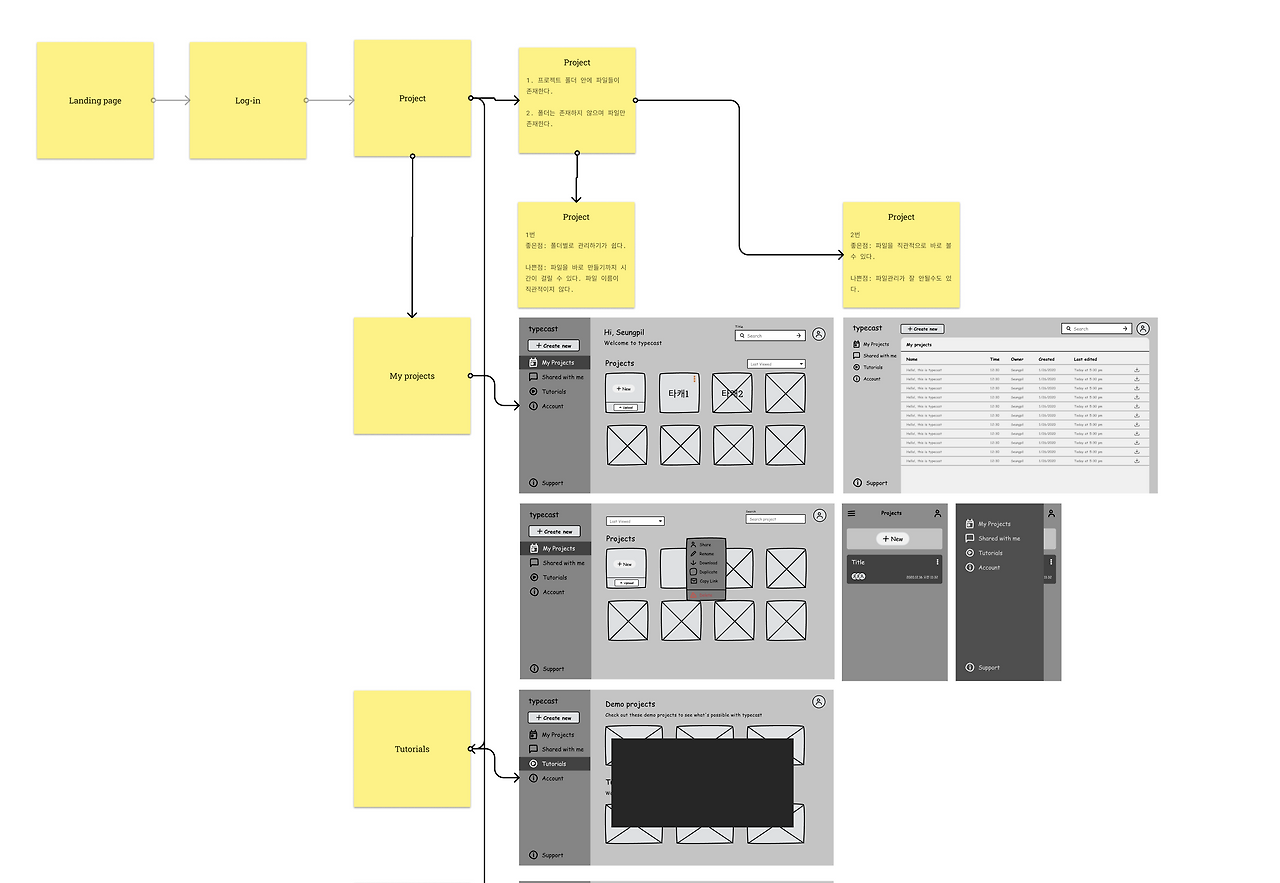 나의 생각을 빠르게 전달하기 위하여 와이어 프레임을 신속하게 제작하여 프로덕트 팀과 아이디어와 의견을 공유했다. 이 기능구조 설계하였을 때에 프로젝트 파일 관리개선, 제품 기능 재구성, 채널을 추가하여 churn rate를 줄일 수 있다는 가설에 대해서 논의하였다.