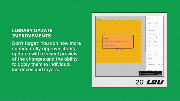 변경 사항에 대한 미리 보기와 개별 인스턴스 및 레이어에 적용할 수 있는 기능을 통해 쉽게 비교해 보면서 라이브러리 업데이트를 승인할 수 있다. (이것도 상당히 혁신적인 업데이트 같다)