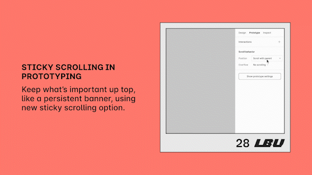 프로토타이핑에서 세로로 스크롤할 때 엘리먼트를 상단에 붙을 수 있다. 프로토타이핑에서 헤더나 중요한 요소에 스티키 스크롤링을 설정할 수 있다. 링크