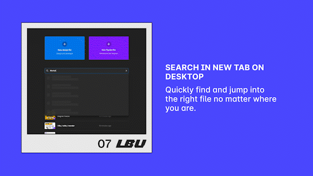 데스크톱에서 새 탭을 시작할 때 파일을 검색할 수 있다.