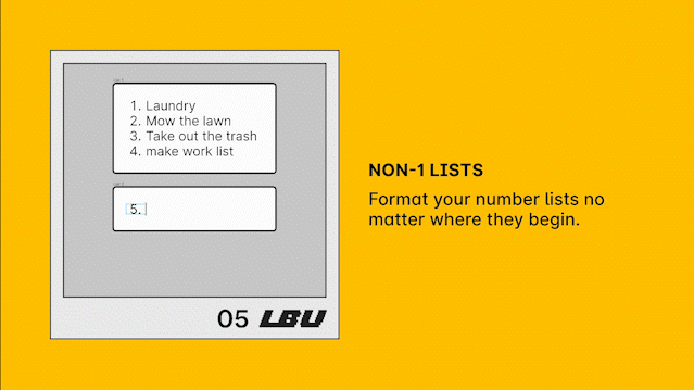 1로만 시작하는 넘버 리스트 대신 원하는 대로 시작 번호를 지정할 수 있다. (개인적으로 가장 원했던 기능)