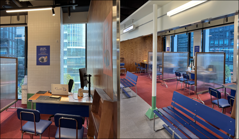 사진에는 보이지 않지만, 입장 전에 통일된 인테리어 작업복을 착용한 직원들이 태블릿을 통해 예약확인 및 설문을 친절히 안내해준다.