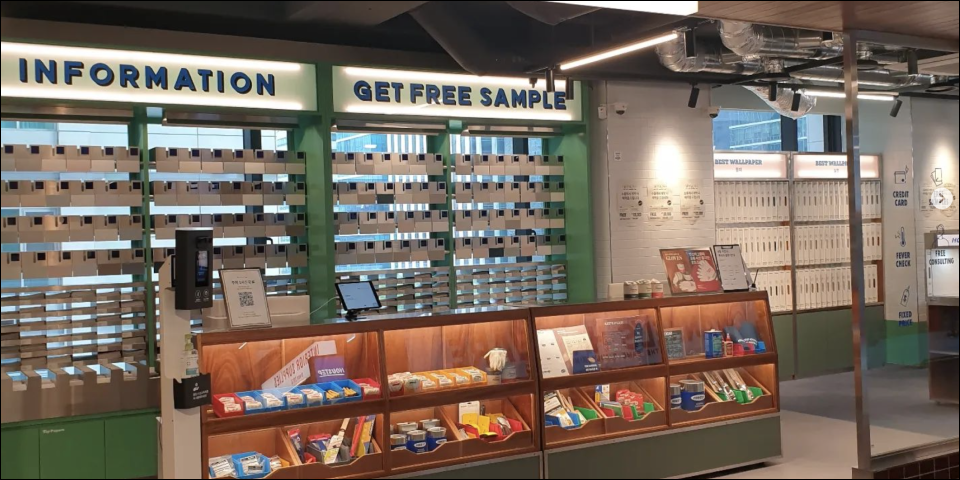 셀프 인테리어로 합리적인 비용에 서비스를 제공하는 업체로서, 매장 전체가 브랜드의 아이덴티티를 돋보이게 표현하고 있다. 입구에는 장비들이 진열되어 있고, 선택된 색상들은 다양한 고객의 취향을 고려한 중립적인 톤이었다.