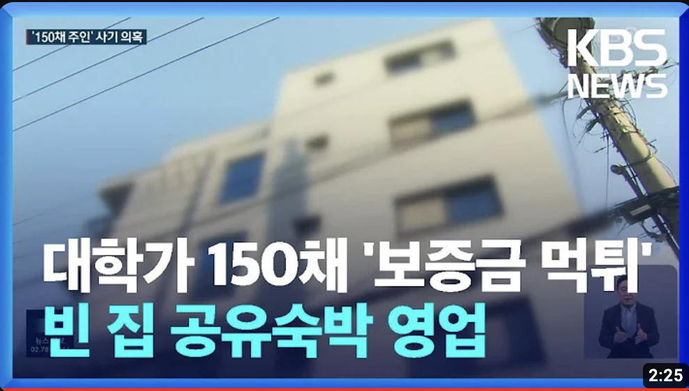 작년 10월 25일에 방영던 뉴스다. 전세사기 피해 세입자들은 두 부류로 나뉜다. 1) 끝까지 집에서 버티는 사람 2) 어쩔 수 없이 다른 집으로 이사 가는 사람. 여기서 말하는 공실은 2번을 선택한 세입자들 방이다. 그렇게 방을 뺀 곳에 임대인은 에어비앤비를 돌렸다. 숙박비는 당연히 그녀 주머니로 들어간다. 세입자들에게 돌아오는 돈은 1도 없다. 현재 더 늘어난 공실을 무보증금 단기 월세로 새로운 세입자가 들어오고 있는 상황이다.