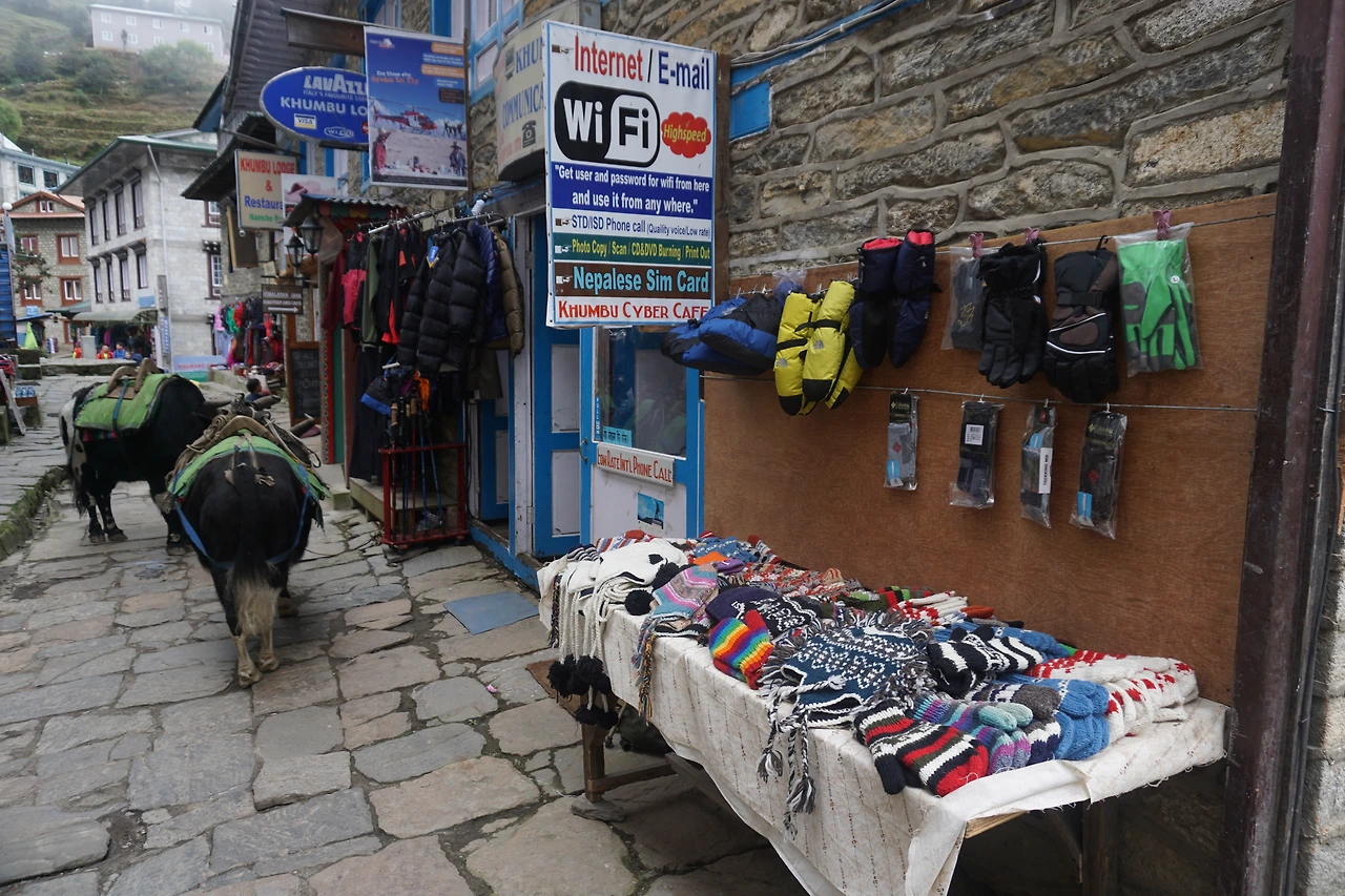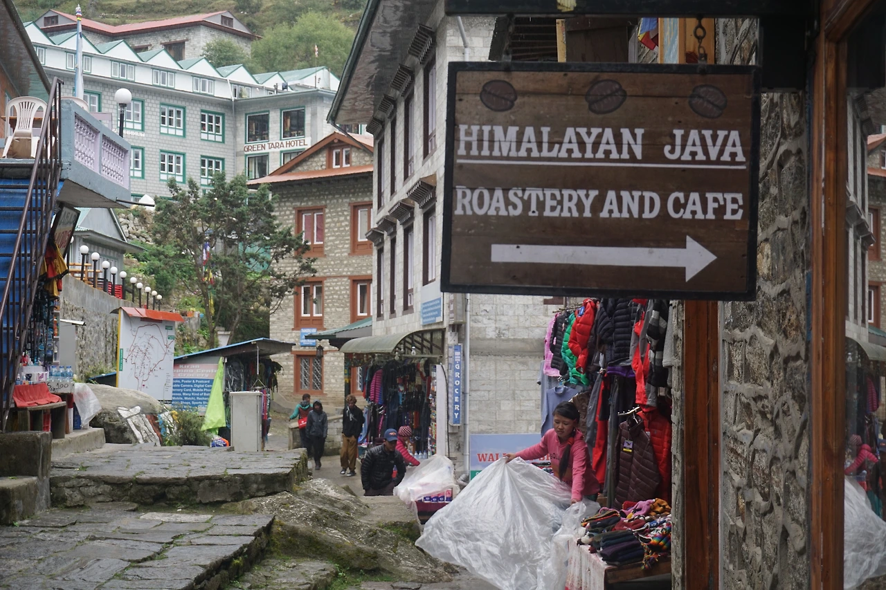남체 뒷골목을 돌아 샹보체 방향으로 약 한 시간쯤 가파른 산길을 올랐다. 어느덧 구름이 자욱이 차오르더니 사방이 먹먹해졌다. 꼭 자욱한 안갯속에 둘러싸인 것만 같다. 사실 이때 우리의 머릿속은 이미 남체의 카페와 베이커리 생각으로 가득했다. 궂은 날씨를 뚫고 오르는 것은 한 시간으로 충분했다. 곧 발걸음을 돌려 하산을 시작했다.