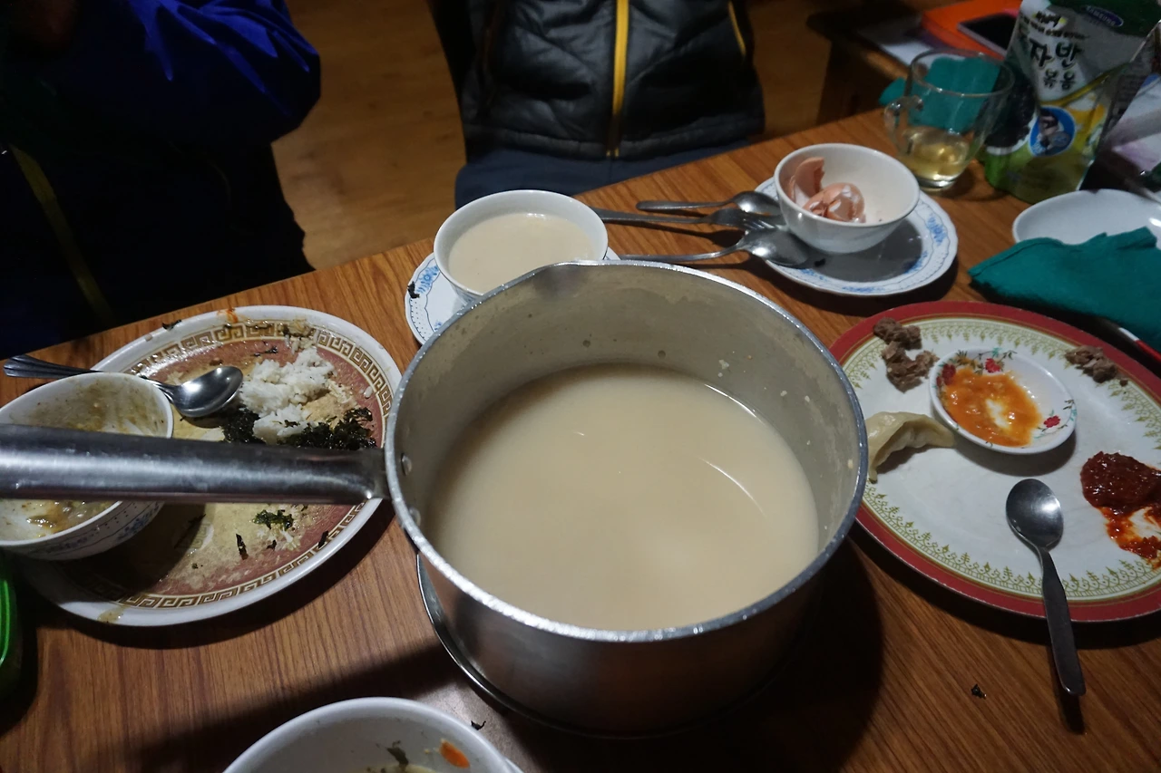고된 하루에 대한 보상으로 이날 저녁에는 특식이 준비되었다. 바로 한국에서 가져온 누룽지! 시리에게 말린 누룽지를 건네주며 부탁하니 주방에 얘기해서 한 냄비 가득 끓여 내왔다. 볶은 김과 고추장, 쌈장을 곁들여 먹으니 이루 말로 형용할 수 없을만치 감동적이었다. 그럴 법도 했다. 거의 일주일 동안 현지식만 먹지 않았던가. 어떤 장소에서 만나는 어떤 음식은 때로 음식을 넘어 감동이 될 수 있다. 우린 누룽지를 싹싹 다 비운 뒤 주문했던 현지식도 남기지 않고 다 먹었다.