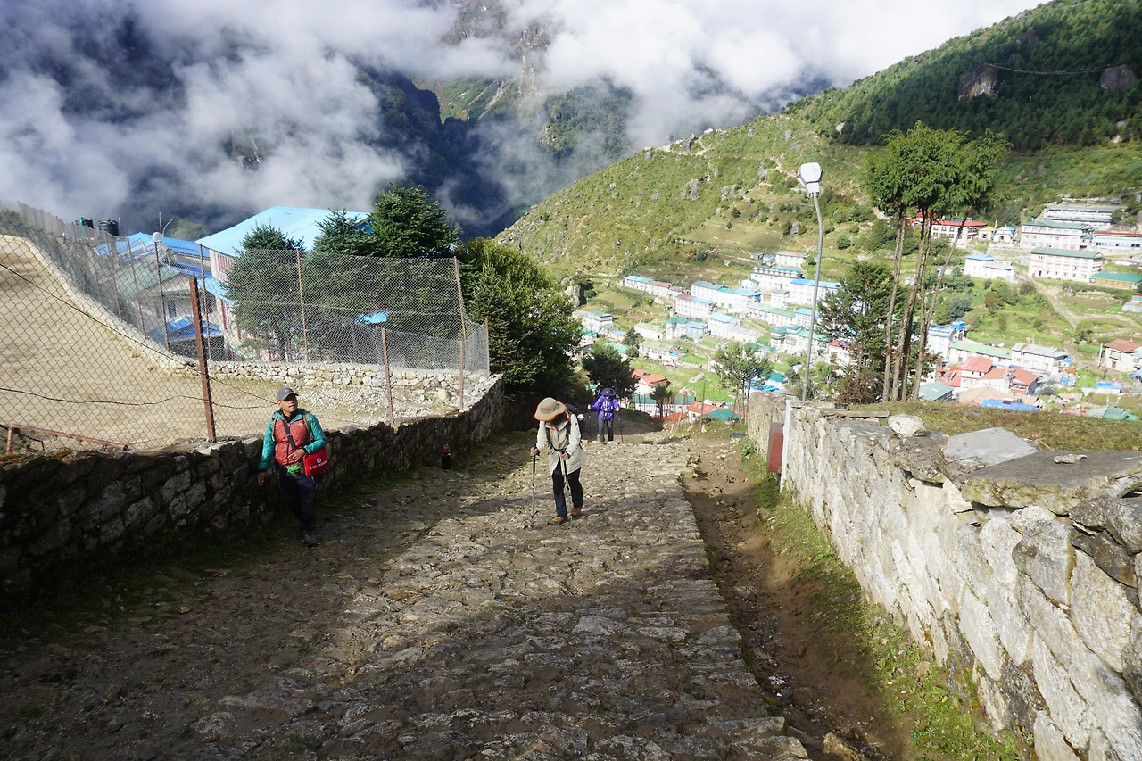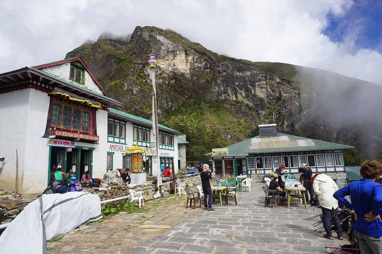 식사를 마치자 오늘의 고점인 탱보체(3,860M) 까지 두 시간 동안 고도 600미터를 올리는 험한 길이 기다리고 있었다. 마음 한 구석에 다시금 걱정이 차오른다. 얘들이 잘 따라올 수 있을까. 다들 비슷한 걸 느끼는지 막내 혜정이의 얼굴에는 조금 긴장한 빛마저 느껴진다. 물을 사고 화장실도 다녀오고 신발끈을 단단히 묶었다. 카메라는 배낭에 집어넣었다. 채비를 마친 뒤 오후 1시 30분 경 다시 길을 나섰다.