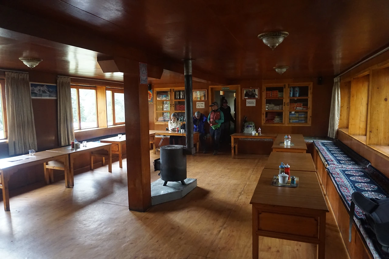트레커들 대부분은 텡보체에서 곰파 구경을 하면 같은 마을의 롯지에 묵는다. 우리가 탱보체를 놔두고 굳이 20 여분을 더 걸어내려 가 데보체의 롯지를 선택한 이유는 시설이 더 좋기 때문이다. 과연 숙소는 깔끔한 편이었다. 도착한 시간은 약 오후 3시 50분. 저녁을 주문하고 순서를 정해 샤워를 했다.