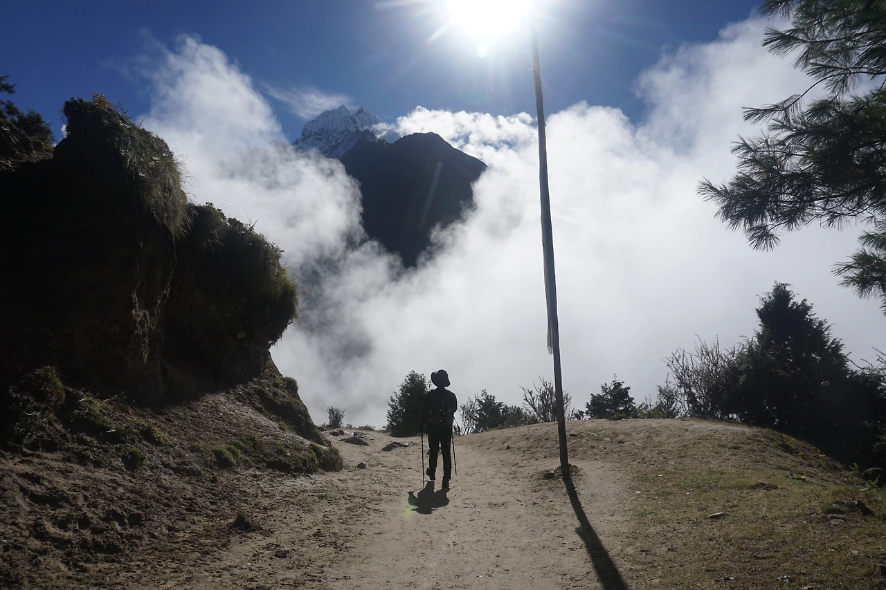 남체를 벗어나면 사나사(3,600M)로 향하는 능선길이다. 차오르는 구름 너머로 설산이 보이기 시작한다. 에베레스트, 로체, 아마다 블람, 탐체르쿠 등 이름도 쟁쟁한 미봉들이 시야에 들어오기 시작한다. 다만 아침부터 구름이 자욱이도 차올라 잘 보이진 않았다. 저들을 좀 더 자세히 보기 위해선 한참을 더 가까이 가야 할 것만 같다. 아직 갈 길이 멀다.