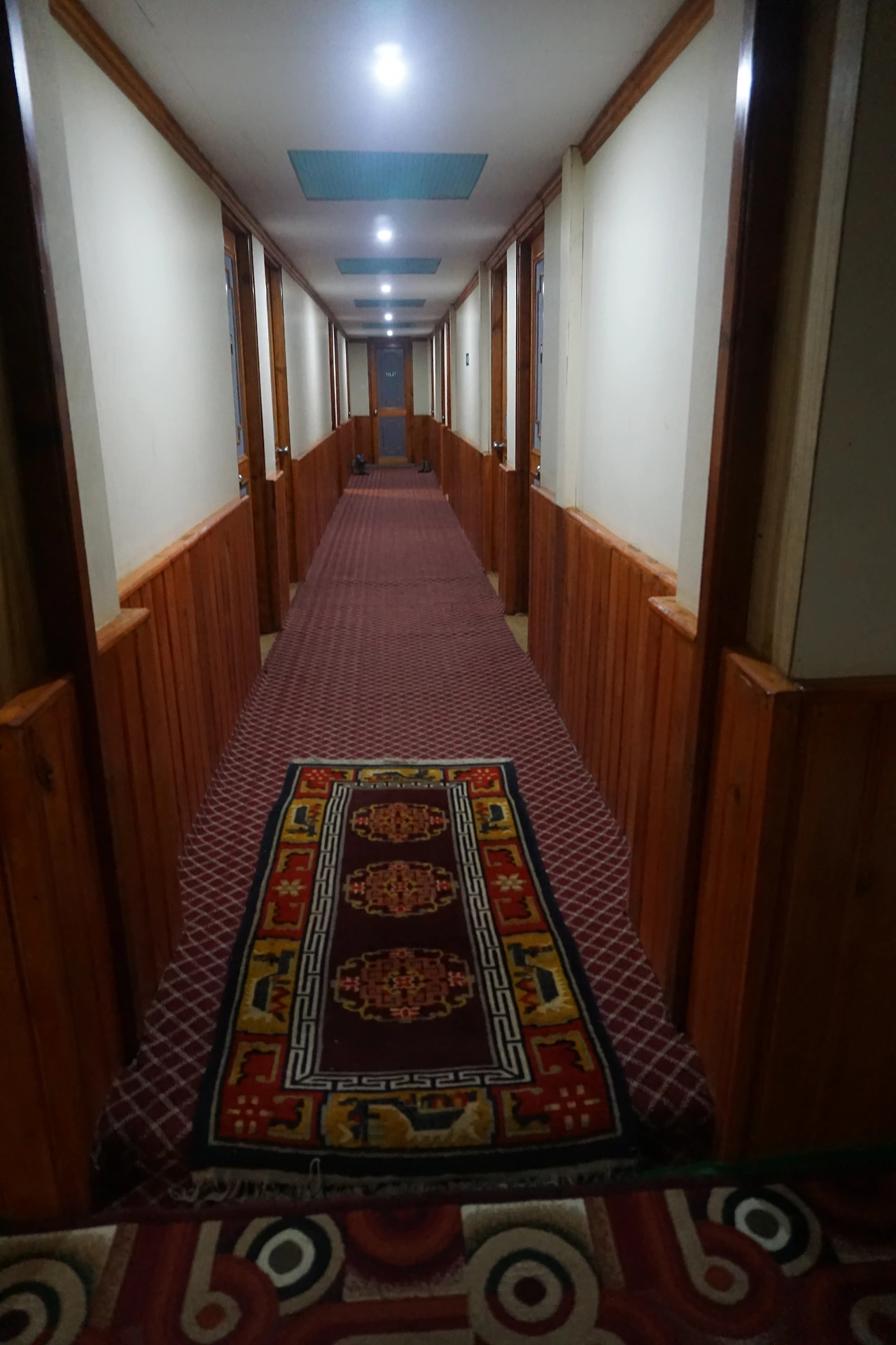 복도에는 카펫이 깔려있었다. 방은 넓고 침구는 깨끗했다. 그래 봐야 서울의 깔끔한 모텔 수준이지만 이 동네에서 이 수준이면 오성급 호텔이다. 핫 샤워를 하고 싶다고 하니 사장이 샤워실로 데려가 안내를 해주는데, 시설과 청결도가 유럽 배낭여행 때 묵던 도미토리의 샤워실 수준이다. 여기서 이 수준이면 서울의 오성급 호텔이 부럽지 않다. 여자아이들은 모든 것에 격하게 감동했다. 지금 다시 사진을 보니 영화 '그랜드 부다페스트 호텔'의 한 장면이 불쑥 눈 앞을 스친다. 영화 속 호텔처럼 많은 것을 갖추진 않았으나 충분한 격조가 있는 곳이다. 이 여행을 통틀어 호텔이라는 이름을 쓸 자격이 있는 유일한 숙소였다고 생각한다.