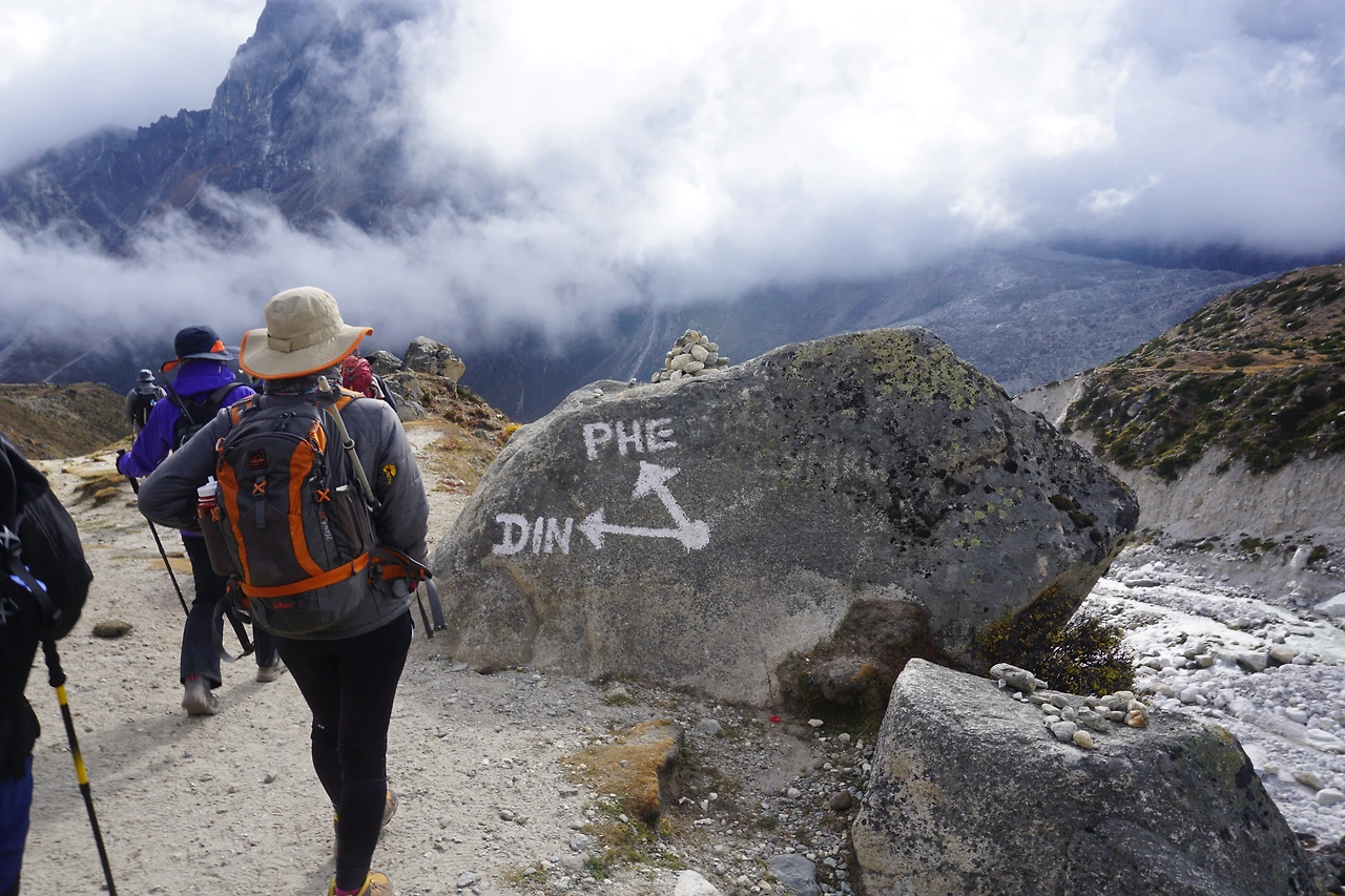메모리얼 파크에서 좀 내려온 뒤엔 갈림길이 나왔다. 여기서부턴 올라올 때와 다른 길로 간다. 이왕이면 올라올 때 한번 본 풍경 말고 다른 풍경을 감상하며 내려가는 게 더 좋지 않느냐는 판단이었다. 오늘의 목적지는 페리체(4,270m). 무려 닷새 만에 샤워를 하고 술도 마실 생각을 하니 발걸음이 절로 가벼워진다.