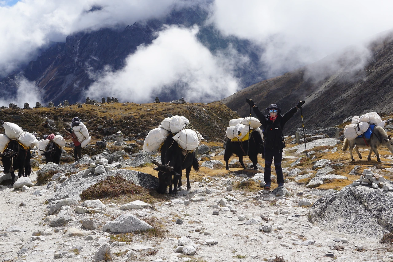 투클라를 나서 조금 걸어 내려가니 곧 메모리얼 파크에 닿았다. 역시 내려가는 길이라 발걸음도 마음도 가볍다. 일행들의 말투에서도 점차 생기가 느껴진다. 원래 고산증이 올 경우 낮은 고도로 내려가면 증세가 감쪽같이 사라진다고 하는데, 이 친구 하는 짓을 보니 그 말이 맞는 것 같다. 힘들다고 겔겔 대던 게 언제라고, 어느 순간 야크들 사이로 서서 잔망스러운 포즈를 잡고 카메라를 쳐다보질 않는가.