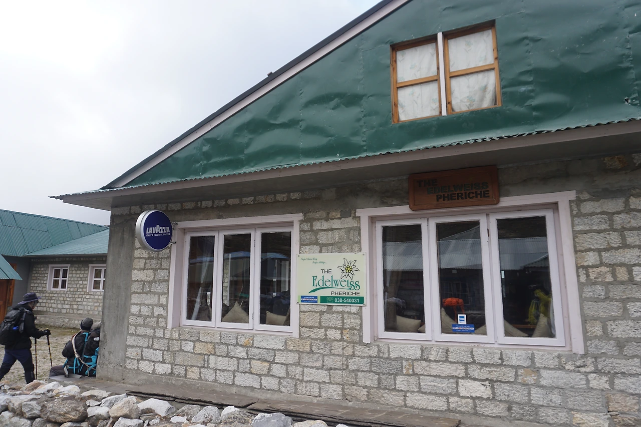이날 우리가 묵은 숙소는 에델바이스 페리체(The Edelweiss Periche). 이름 뒤에 '호텔'이라는 상호를 붙여주고 싶을 만큼 감동적이었다. 묵직한 나무로 된 문을 열자 바로 깔끔한 세면대가 보이고, 그 옆으로 식당 문이 보인다. 세면대의 존재는 식당에 들어가기 전 먼지와 땀을 씻어내라는 메시지로 읽혔다. 식당으로 들어가니 사장이 정중한 목소리로 ‘식당 안에서는 등산 스틱을 찍고 다니면 안 된다’고 설명한다.