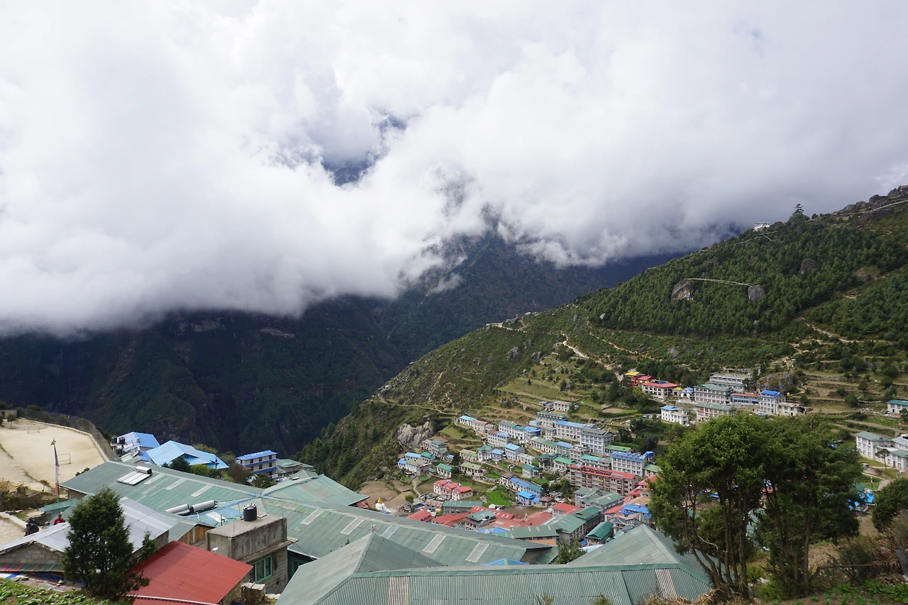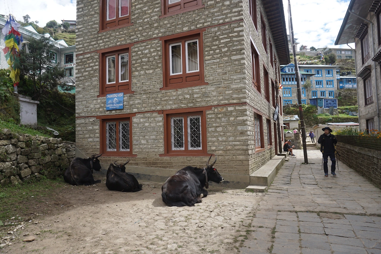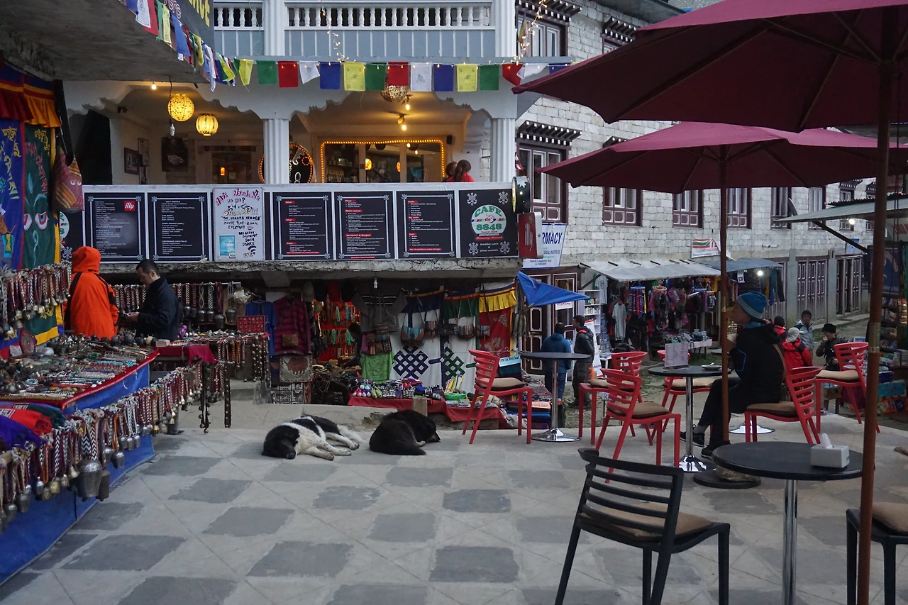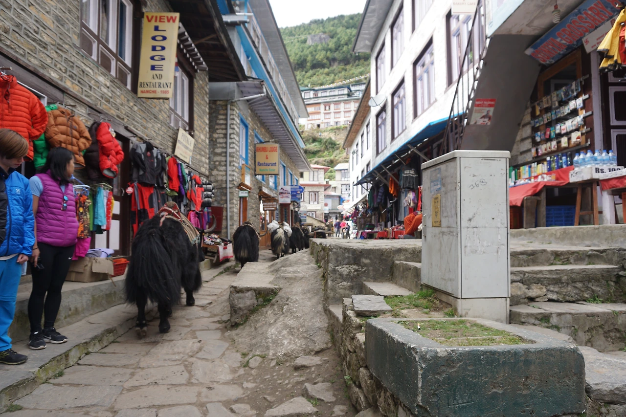 남체에 도착한 시간은 대략 정오쯤이었다. 다시 찾은 남체는 여전히 그 모습 그대로 이국적인 생기와 활력을 내뿜고 있었다. 깨끗한 숙소를 찾느라 좀 헤매는 사이 뒤를 돌아보니, 여자애들은 그새 상점에 들어가 뭔가를 물어보고 흥정하고 있다.