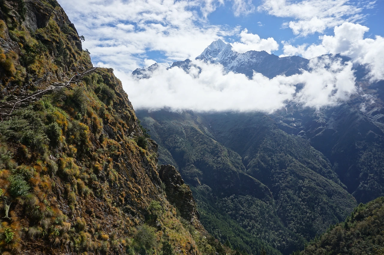 몽라에서 남체로 가는 길은 수월했다. 능선길을 따라 계속 내리막이 이어졌다. 가는 길에 한 번씩 뒤를 돌아보니 설산들이 점점 멀어져 가는 게 느껴져 조금 서운한 마음마저 들었다.