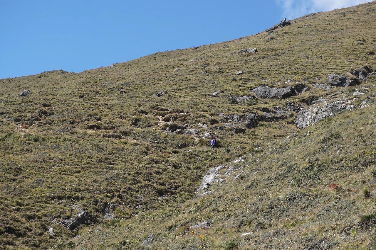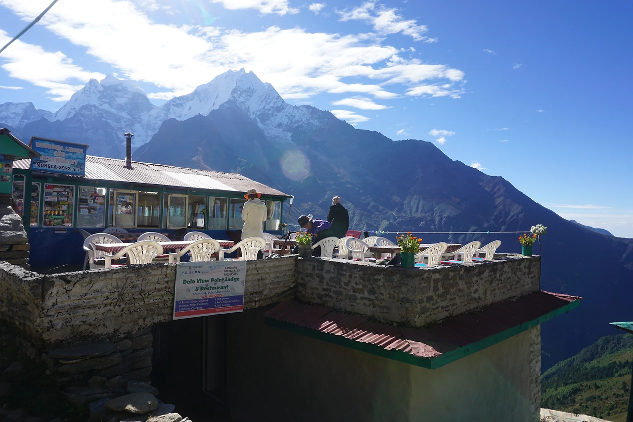 약간의 문제가 있었다. 간밤을 묵은 포르체 텡가는 포르체 마을 아랫동네 계곡에 자리하고 있다. 포르체에 비해 고도가 약 이백 미터 낮다(3,670 m). 그런데 여기서 남체로 가는 길은 다시 계곡 위로 올라 능선을 이어가야 한다. 아침에 올라야 할 계곡 윗동네 이름은 몽라(3,970m).