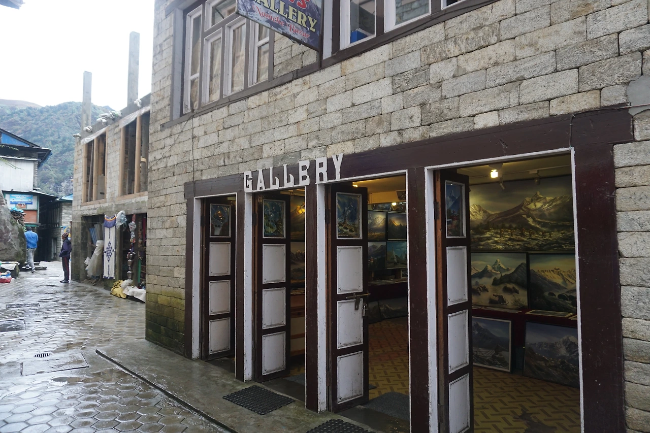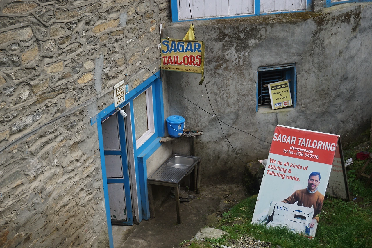 이날 일정은 오전에 남체에서 좀 더 밍기적대다 점심께 출발해 팍딩까지 내려가는 것이다. 나는 율이 아침을 먹고 있는 사이 상점들이 문을 열었는지 확인하러 다녀왔다. 아직 여덟 시가 채 되지 않았지만 상점들은 이미 손님 맞을 준비를 하느라 분주했다. 우린 여덟 시부터 약 두 시간 정도 자유시간을 보낸 뒤 열 시에 베이커리에 모여 군것질을 하기로 했다. 난 비 내린 남체의 골목길을 혼자 걸으며 구석구석을 구경했다.