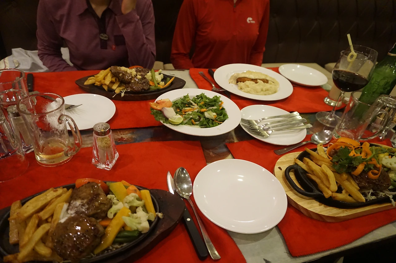 우린 문명 세계의 품격 있는 저녁을 먹고 싶었다. 조용한 실내, 스테이크, 와인 정도면 된다. 여행사 사장님이 추천해준 식당을 찾아 헤매던 중, '카트만두 스테이크 하우스'라는 간판을 보고 그대로 빨려 들어갔다. 매우 훌륭한 선택이었다. 조용했고, 최고급 스테이크를 매우 저렴한 가격으로 제공했으며, 물론 와인과 맥주도 있었다. 미디움 레어로 주문한 스테이크는 한국 기준 레어 정도의 익힘으로 피가 뚝뚝 떨어졌는데, 스테이크는 피를 촉촉이 머금은 상태가 가장 맛있다는 사실을 이때 깨달았다.