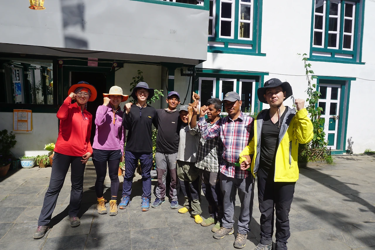 히말라야에서의 첫 식사를 했던 롯지로 찾아가, 마지막 식사를 주문했다. 밥을 먹기 전 미리 포터 한분 한분에게 팁 봉투를 건네 드렸다. 이분들과는 여기서 작별해야 한다. 비록 말 한마디 안 통했지만, 이분들의 선량하고 따뜻한 마음씨는 언어와 문화의 벽을 넘어 여과 없이 전해져 왔다. 진심으로 고마움을 전하고 싶었다. 내 가방을 들어줬던 분에게는 마지막으로 헤어지기 전, 배낭을 뒤져 남은 행동식과 핫팩 등을 챙겨 드렸다. 돈네밧.