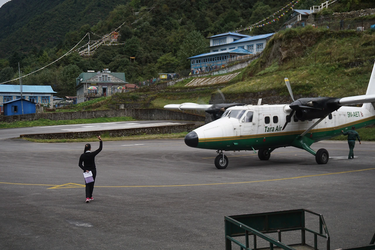 루클라 공항은 정말이지 구경거리가 된다. 한국 지방 소도시 시외버스터미널 만한 규모에 탑승장과 활주로가 다 들어가 있다. 마을버스만 한 비행기는 동시에 최대 네대까지 수용 가능하지만, 두대 이상 공항에 머무르는 걸 보지 못했다. 15인승 쌍발식 경비행기는 쉬지 않고 사람과 물자를 실어 나른다. 비행기가 도착하면 사람이 내리기도 전에 역무원들이 카트를 끌고 우르르 다가가 짐부터 빼낼 준비를 한다. 사람 열댓 명이 내리는 시간은 오래 걸리지 않는다. 순식간에 사람과 물자를 내려놓은 비행기는 다시 카트만두로 가는 사람들을 태우고 프로펠러를 돌리기 시작한다. '애애앵' 하는 프로펠러 소리가 니트로 부스터를 먹인 것처럼 '구와아앙' 하고 폭발할 듯이 비명을 질러대면, 이륙할 준비가 끝난 것이다. 관제사가 수신호를 주면 조종사는 비행기를 아담한 활주로 위로 올려놓는다. 비행기는 활주로 끝을 향해 추락할 듯 돌진하다 가볍게 뛰어올라 하늘 위를 오른다.