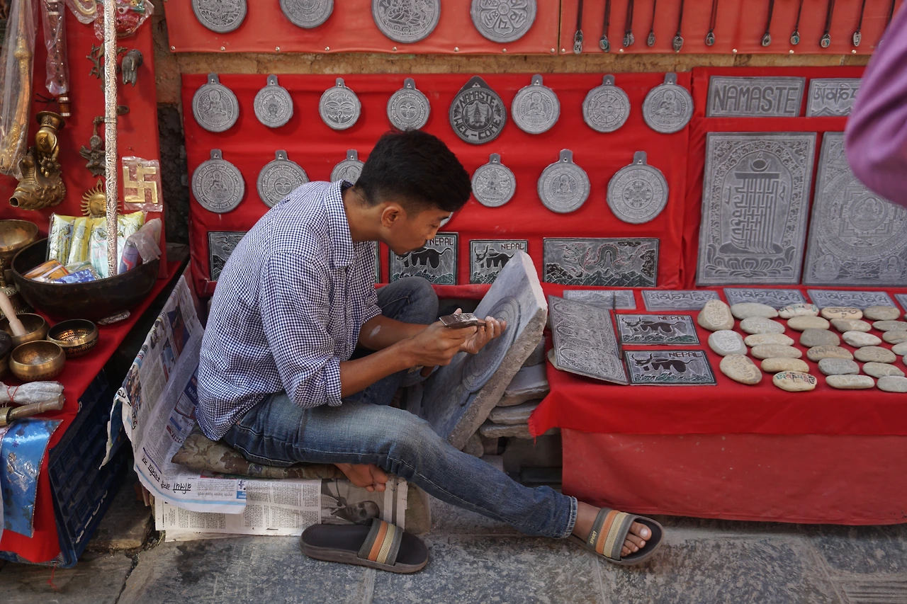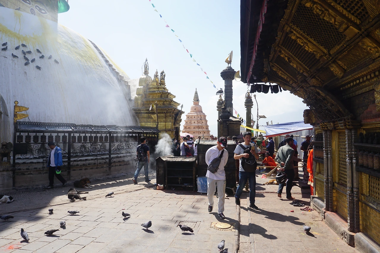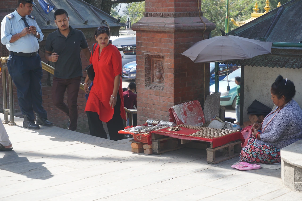 먼저 향한 곳은 스와얌부나트 사원, 일명 원숭이 사원이라고도 불리는 곳이다. 카트만두 시내 중심가에서 조금 떨어진 외곽의 고지대에 위치해있었다. 카트만두를 대표하는 종교 문화재답게 사원 내부는 기도하러 온 현지인, 구경하러 온 외국인 관광객, 수학여행 온 어린 학생들 무리 등 다양한 사람들로 북적였다. 오래된 사원 건물 한편에는 장신구와 기념품을 만드는 세공장이들, 그리고 상인들이 자리하고 있었다.